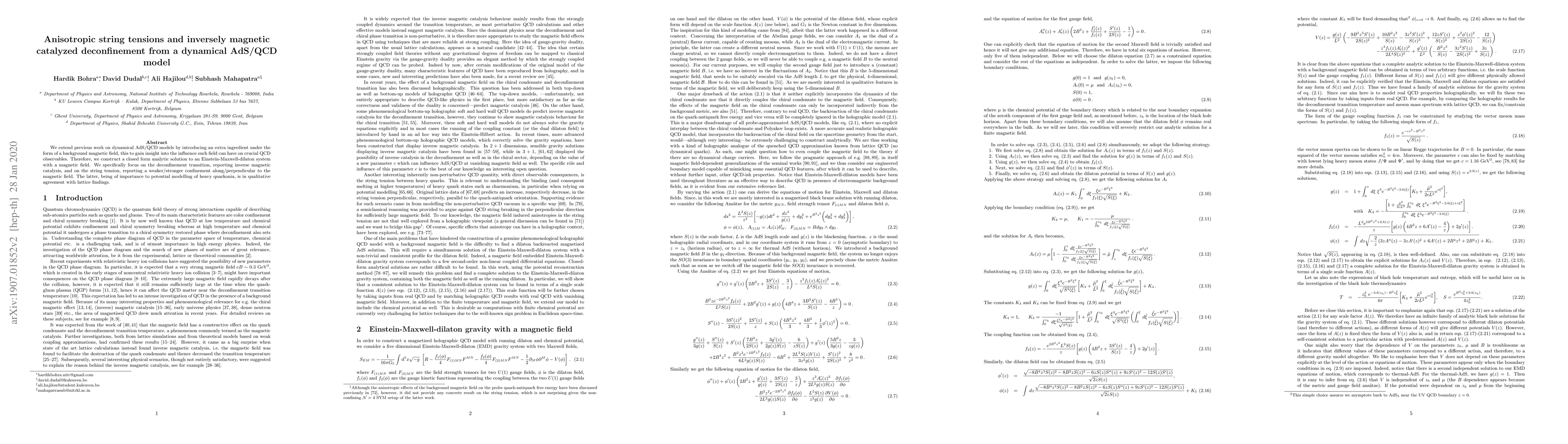 We extend previous work on dynamical AdS/QCD models by introducing an extra ingredient under the form of a background magnetic field, this to gain insight into the influence such field can have on crucial QCD observables. Therefore, we construct a closed form analytic solution to an Einstein-Maxwell-dilaton system with a magnetic field. We specifically focus on the deconfinement transition, reporting inverse magnetic catalysis, and on the string tension, reporting a weaker/stronger confinement along/perpendicular to the magnetic field. The latter, being of importance to potential modelling of heavy quarkonia, is in qualitative agreement with lattice findings.