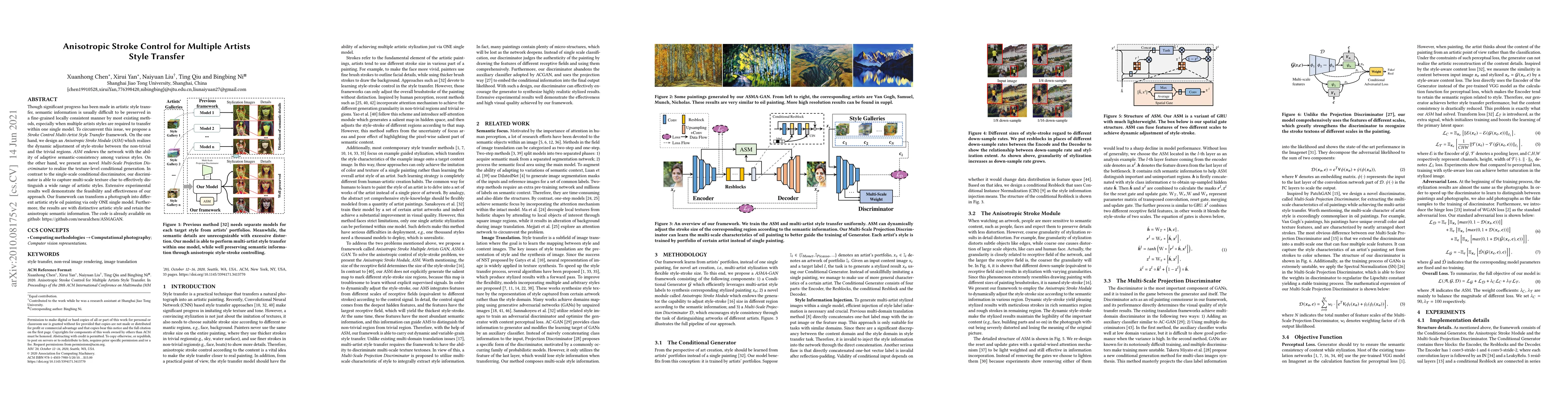 This paper proposes a Stroke Control Multi-Artist Style Transfer framework that uses an Anisotropic Stroke Module to dynamically adjust style-stroke between regions, enabling adaptive semantic consistency across multiple artists' styles. It also introduces a Multi-Scale Projection Discriminator for texture-level conditional generation, demonstrating superior performance in style transfer with a single model.