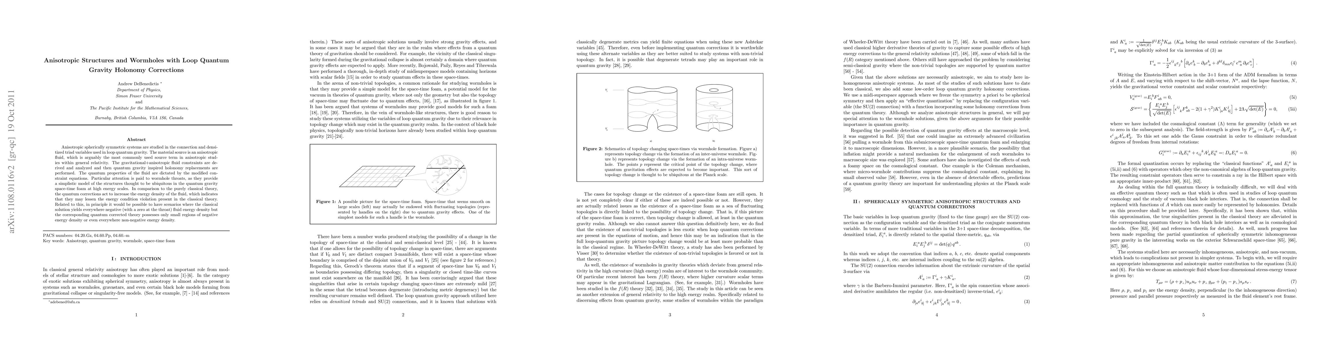 Anisotropic spherically symmetric systems are studied in the connection and densitized triad variables used in loop quantum gravity. The material source is an anisotropic fluid, which is arguably the most commonly used source term in anisotropic studies within general relativity. The gravitational+anisotropic fluid constraints are derived and analyzed and then quantum gravity inspired holonomy replacements are performed. The quantum properties of the fluid are dictated by the modified constraint equations. Particular attention is paid to wormhole throats, as they provide a simplistic model of the structures thought to be ubiquitous in the quantum gravity space-time foam at high energy scales. In comparison to the purely classical theory, the quantum corrections act to increase the energy density of the fluid, which indicates that they may lessen the energy condition violation present in the classical theory. Related to this, in principle it would be possible to have scenarios where the classical solution yields everywhere negative (with a zero at the throat) fluid energy density but the corresponding quantum corrected theory possesses only small regions of negative energy density or even everywhere non-negative energy density.