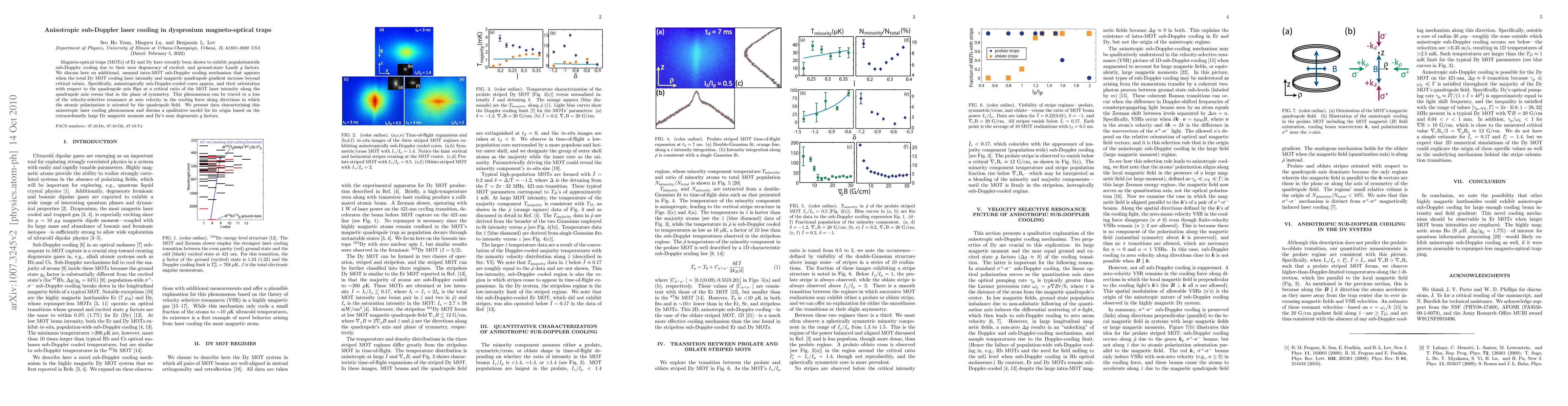 The research investigates dysprosium magneto-optical traps (MOTs) to observe an unusual intra-MOT sub-Doppler cooling mechanism, characterized by anisotropically sub-Doppler-cooled cores with flipping orientation at critical intensity ratios.