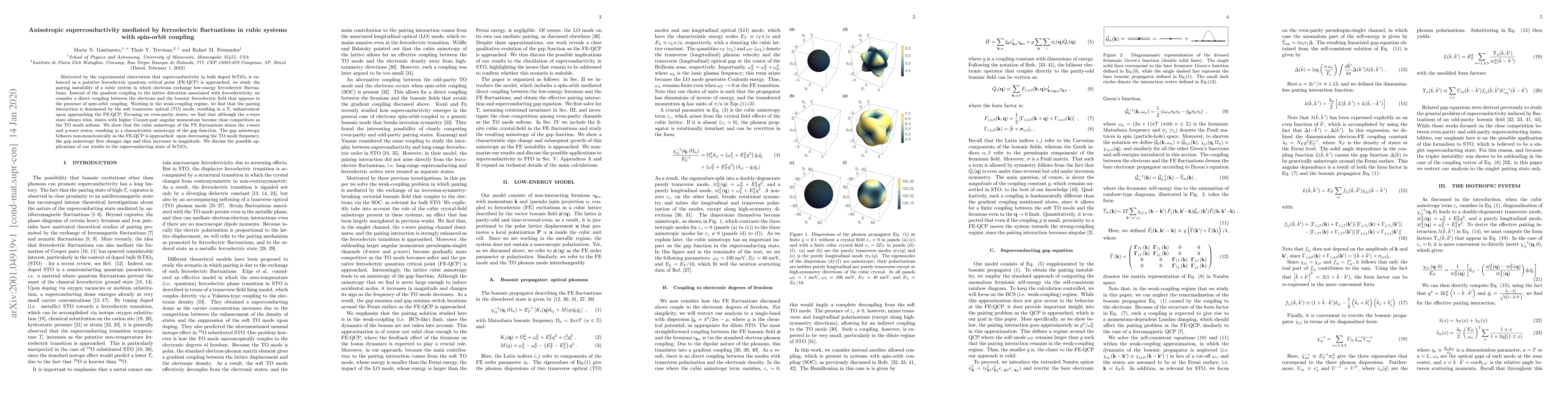 Motivated by the experimental observation that superconductivity in bulk doped SrTiO$_{3}$ is enhanced as a putative ferroelectric quantum critical point (FE-QCP) is approached, we study the pairing instability of a cubic system in which electrons exchange low-energy ferroelectric fluctuations. Instead of the gradient coupling to the lattice distortion associated with ferroelectricity, we consider a direct coupling between the electrons and the bosonic ferroelectric field that appears in the presence of spin-orbit coupling. Working in the weak-coupling regime, we find that the pairing interaction is dominated by the soft transverse optical (TO) mode, resulting in a $T_{c}$ enhancement upon approaching the FE-QCP. Focusing on even-parity states, we find that although the $s$-wave state always wins, states with higher Cooper-pair angular momentum become close competitors as the TO mode softens. We show that the cubic anisotropy of the FE fluctuations mixes the $s$-wave and $g$-wave states, resulting in a characteristic anisotropy of the gap function. The gap anisotropy behaves non-monotonically as the FE-QCP is approached: upon decreasing the TO mode frequency, the gap anisotropy first changes sign and then increases in magnitude. We discuss the possible applications of our results to the superconducting state of SrTiO$_{3}$.