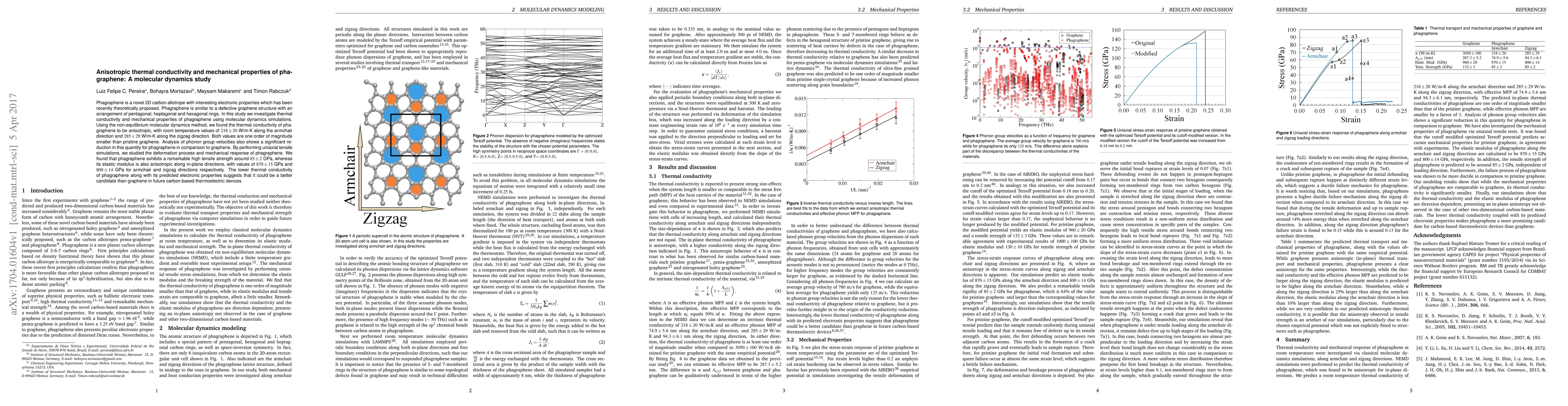 This study explores the anisotropic thermal conductivity and mechanical properties of phagraphene using molecular dynamics simulations. Results show anisotropic thermal conductivity and high tensile strength, suggesting potential for thermoelectric applications.