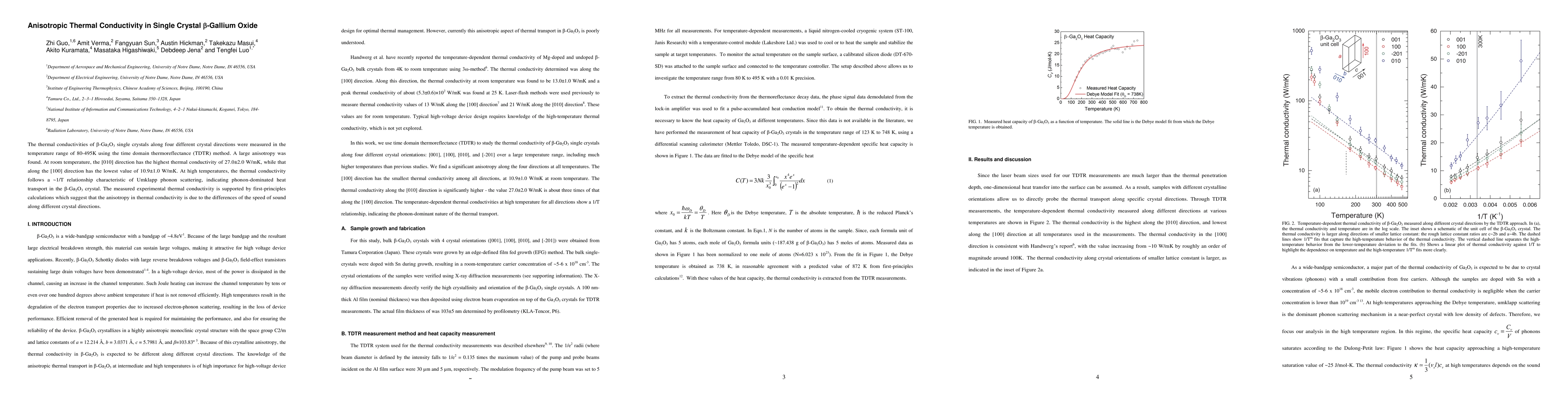 Researchers found large anisotropy in thermal conductivity of single crystal beta-Gallium Oxide, with the highest value along one direction and lowest along another, suggesting phonon-dominated heat transport at high temperatures.