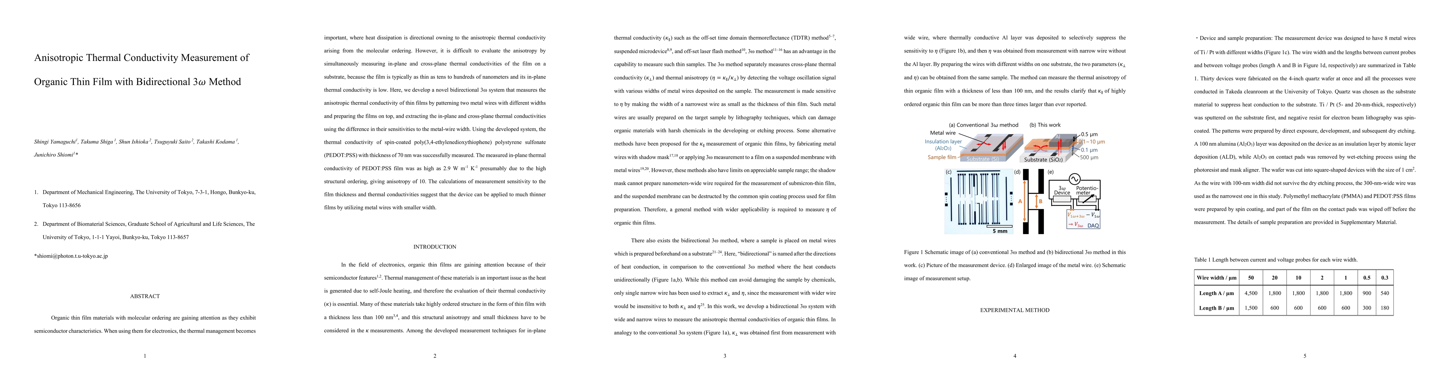 This paper develops a bidirectional 3ω method to measure anisotropic thermal conductivity in organic thin films, specifically demonstrating its application on a 70 nm PEDOT:PSS film. The method uses patterned metal wires to distinguish in-plane and cross-plane conductivities, revealing a high in-plane thermal conductivity of 2.9 W m⁻¹ K⁻¹ and an anisotropy of 10.