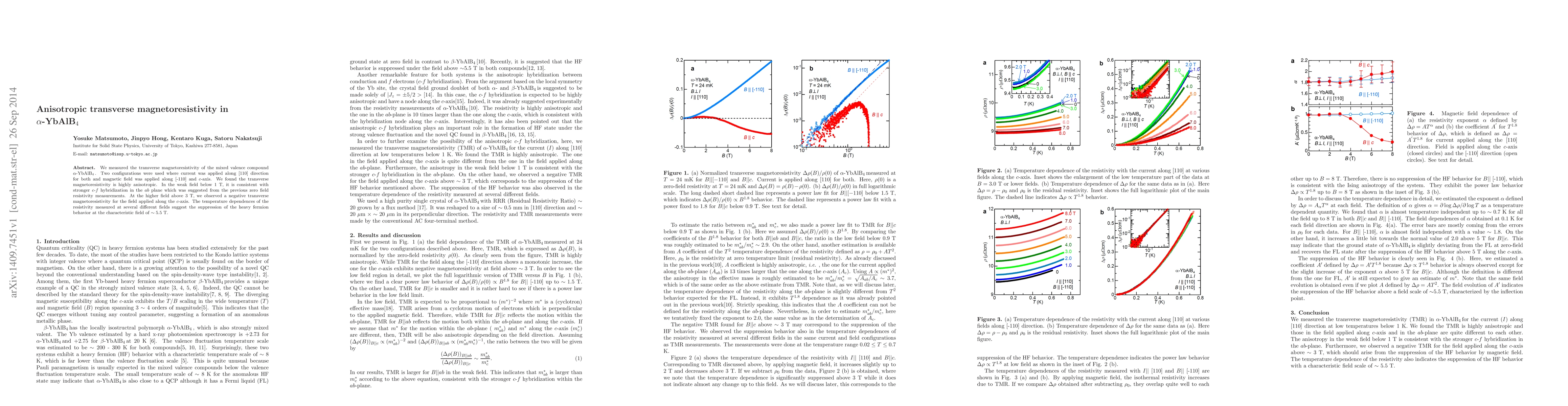 The research investigates the transverse magnetoresistivity of $alpha$-YbAlB$_4$, finding it to be anisotropic. In weak fields, this anisotropy aligns with stronger $c$-$f$ hybridization in the $ab$ plane. In higher fields above 3T, a negative transverse magnetoresistivity is observed for field along the $c$-axis, indicating suppression of heavy fermion behavior at a characteristic field of $sim 5.5$ T.