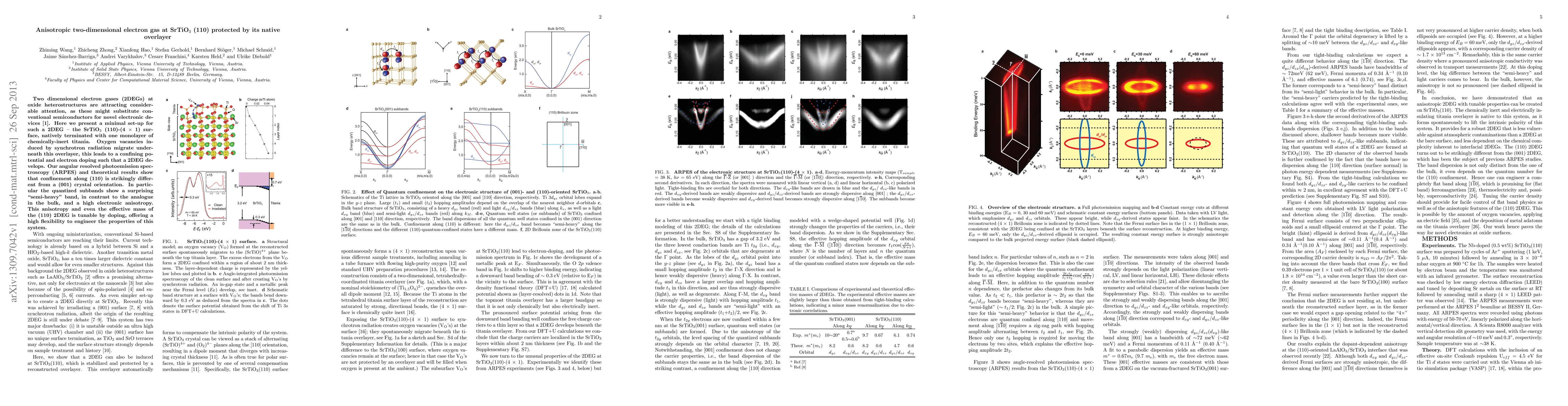 This paper investigates a two-dimensional electron gas (2DEG) at the SrTiO3(110) surface, protected by a native titania overlayer, revealing anisotropic electronic properties and tunable effective mass through doping. ARPES and theoretical studies highlight the unique "semi-heavy" band and high electronic anisotropy of the (110) orientation compared to (001).