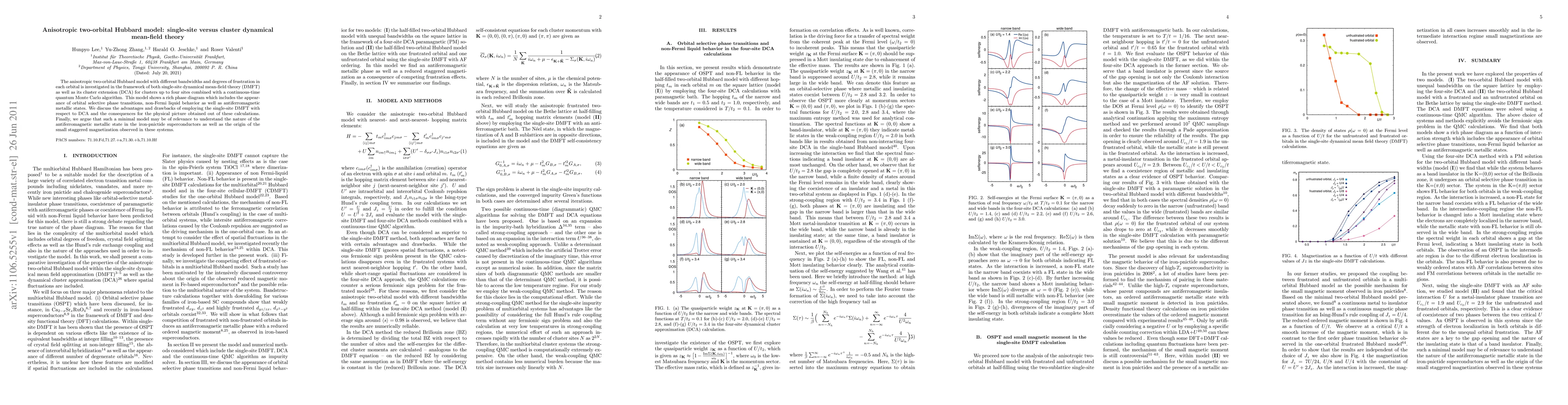This paper explores the anisotropic two-orbital Hubbard model using single-site DMFT and its cluster extension (DCA) up to four sites, revealing a complex phase diagram featuring orbital selective transitions and non-Fermi liquid behavior. It compares the methodologies and suggests relevance to iron-pnictide superconductors.