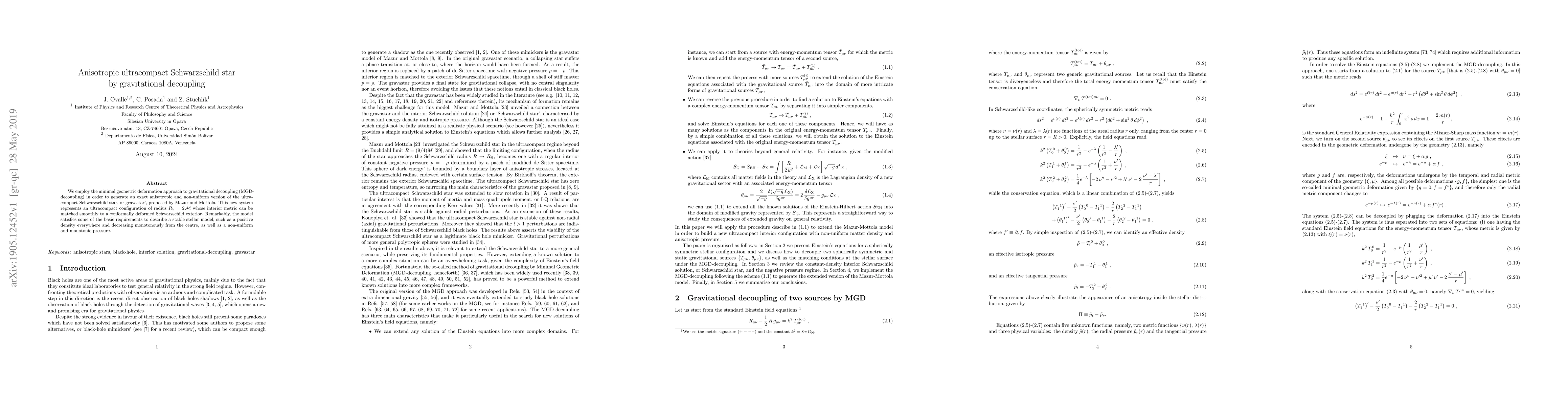 This paper develops an anisotropic and non-uniform version of the ultracompact Schwarzschild star, or 'gravastar', using the minimal geometric deformation approach to gravitational decoupling. The new model maintains positive density and monotonic pressure, fulfilling basic stable stellar model criteria.