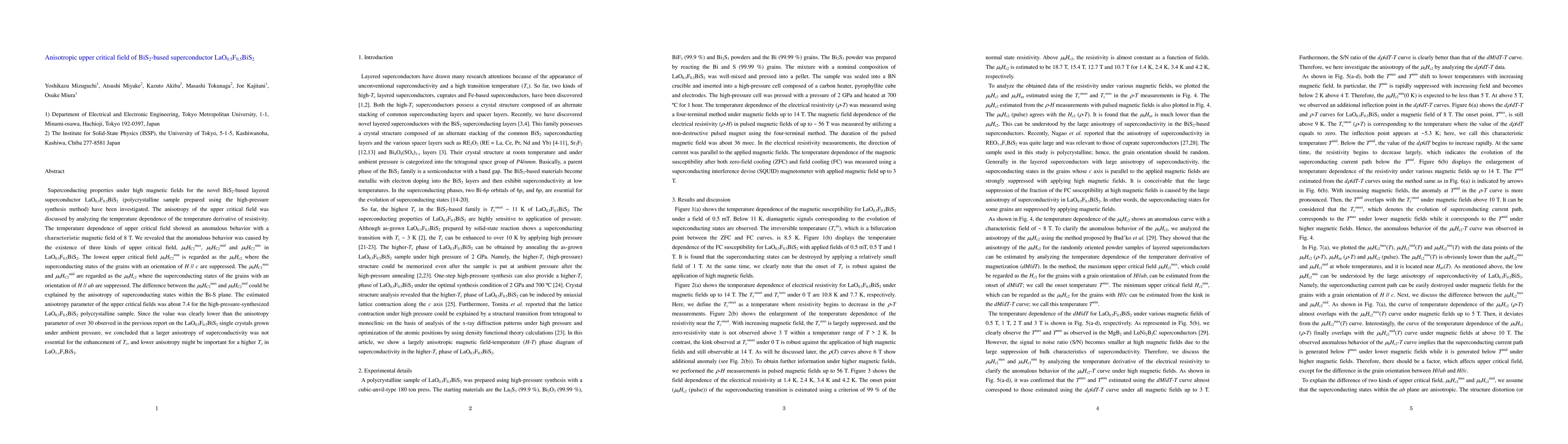 Superconducting properties under high magnetic fields for the novel BiS2-based layered superconductor LaO0.5F0.5BiS2 (polycrystalline sample prepared using the high-pressure synthesis method) have been investigated. The anisotropy of the upper critical field was discussed by analyzing the temperature dependence of the temperature derivative of resistivity. The temperature dependence of upper critical field showed an anomalous behavior with a characteristic magnetic field of 8 T. We revealed that the anomalous behavior was caused by the existence of three kinds of upper critical field, HC2max, HC2mid and HC2min in LaO0.5F0.5BiS2. The lowest upper critical field HC2min is regarded as the Hc2 where the superconducting states of the grains with an orientation of H // c are suppressed. The HC2max and HC2mid are regarded as the Hc2 where the superconducting states of the grains with an orientation of H // ab are suppressed. The difference between the HC2max and HC2mid could be explained by the anisotropy of superconducting states within the Bi-S plane. The estimated anisotropy parameter of the upper critical fields was about 7.4 for the high-pressure-synthesized LaO0.5F0.5BiS2 polycrystalline sample. Since the value was clearly lower than the anisotropy parameter of over 30 observed in the previous report on the LaO0.5F0.5BiS2 single crystals grown under ambient pressure, we concluded that a larger anisotropy of superconductivity was not essential for the enhancement of Tc, and lower anisotropy might be important for a higher Tc in LaO1-xFxBiS2.