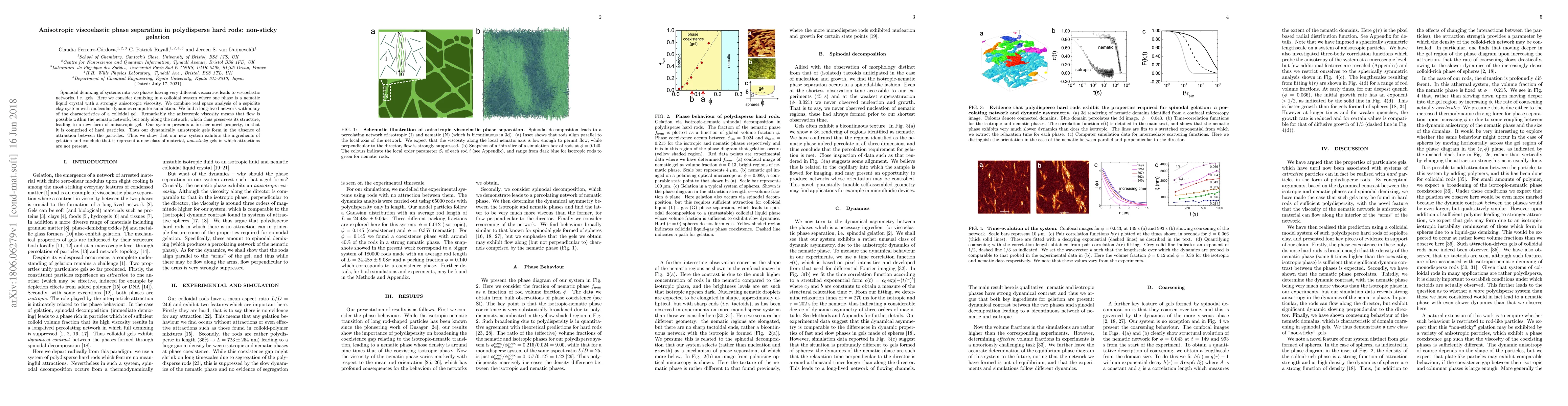 This paper investigates anisotropic viscoelastic phase separation in polydisperse hard rods, revealing the formation of a long-lived, dynamically anisotropic gel with nematic liquid crystal properties. The study demonstrates that this "non-sticky gel" forms without particle attraction, presenting a novel class of material.