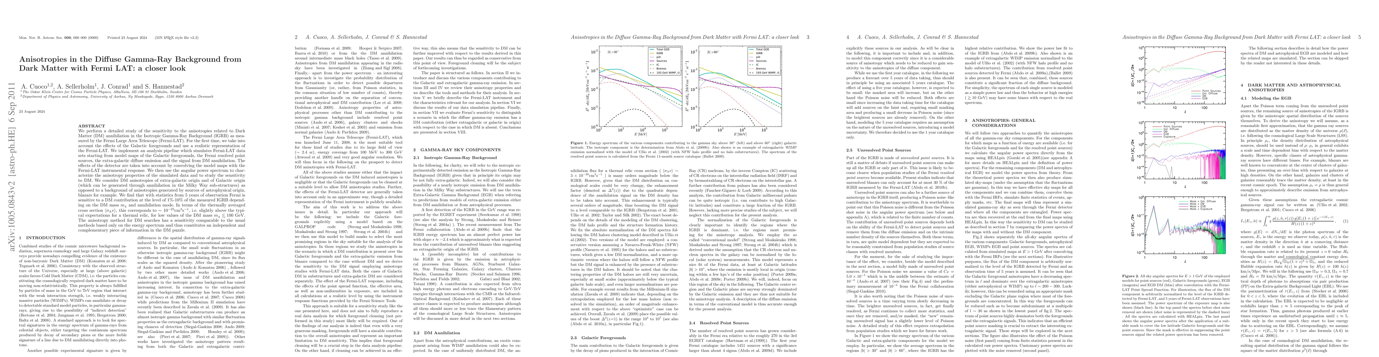 This paper investigates the anisotropies in the diffuse gamma-ray background potentially due to dark matter annihilation, using Fermi-LAT data. It finds Fermi sensitive to dark matter contributions at the thermal-relic cross section level, demonstrating that the anisotropy method offers complementary insights to traditional spectral methods.