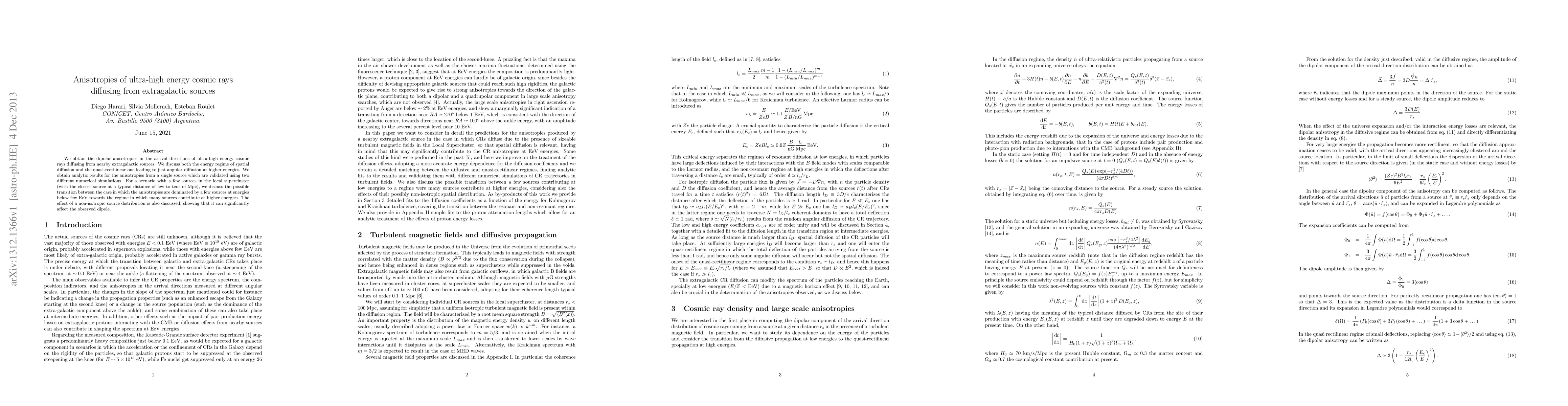 This paper investigates the dipolar anisotropies in ultra-high energy cosmic rays from extragalactic sources, analyzing the transition from spatial diffusion at lower energies to angular diffusion at higher energies. It provides analytic results validated by numerical simulations, and discusses how the observed dipole may shift from being dominated by a few nearby sources to many sources at higher energies, depending on the source distribution.