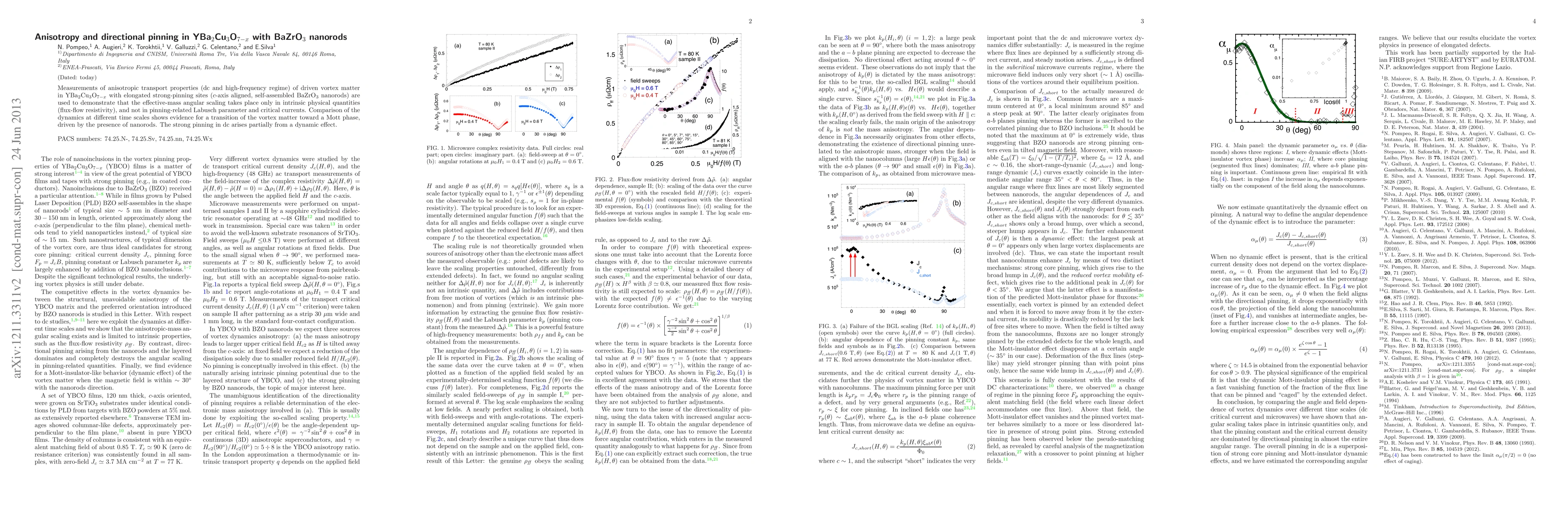 This paper investigates the anisotropic transport properties in YBa$_2$Cu$_3$O$_{7-x}$ with aligned BaZrO$_3$ nanorods, demonstrating that angular scaling affects flux-flow resistivity but not pinning parameters or critical currents. It reveals a transition to a Mott phase in vortex dynamics due to strong pinning effects from the nanorods, partially driven by dynamic factors in direct current conditions.