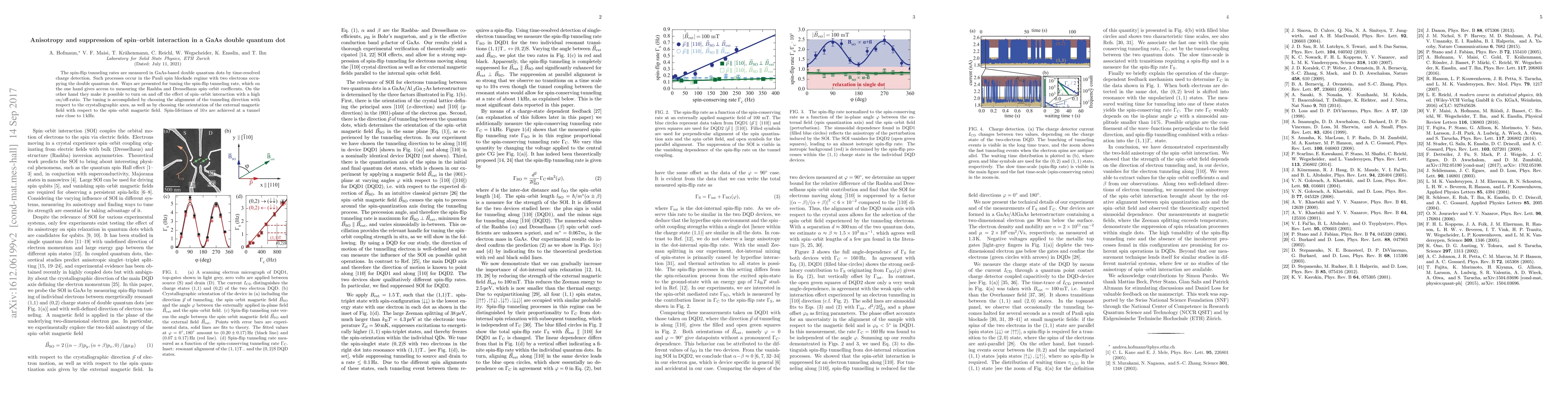 This paper measures spin-flip tunneling rates in GaAs double quantum dots to study spin-orbit interaction (SOI) anisotropy and suppression. The study reveals methods to tune spin-flip rates, enabling precise measurement of Rashba and Dresselhaus coefficients and high on/off-ratio control of SOI effects through crystallographic alignment and magnetic field orientation.