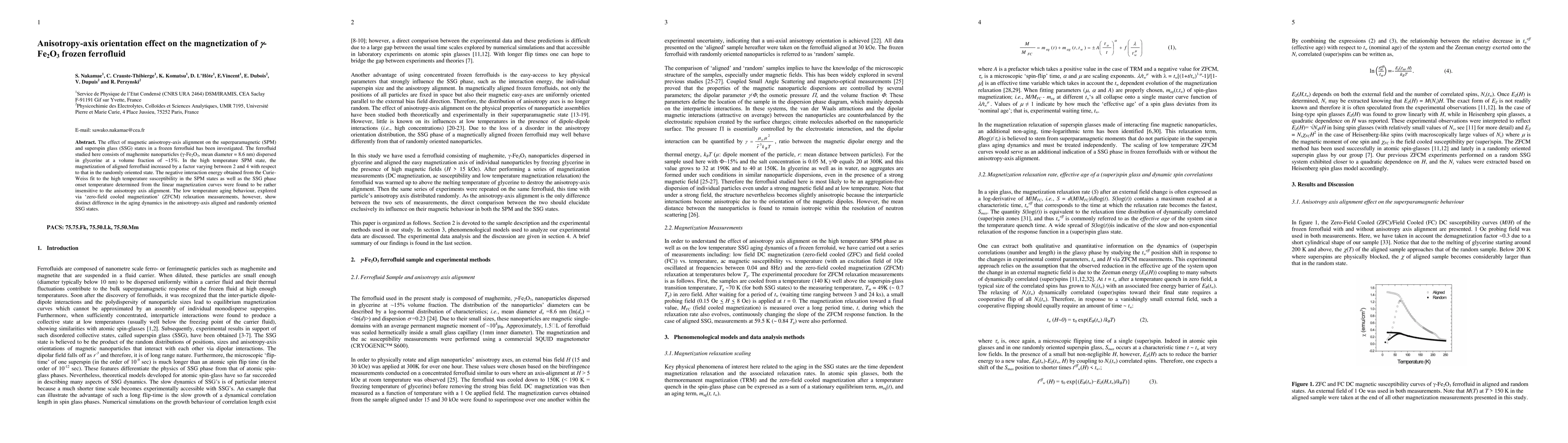 This study investigates how the alignment of magnetic anisotropy axes affects the magnetization in a frozen ferrofluid of γ-Fe2O3 nanoparticles, finding significant magnetization increases in aligned states. Despite this, interaction energy and SSG phase onset temperature remain largely unaffected, while aging dynamics show notable differences between aligned and randomly oriented states.