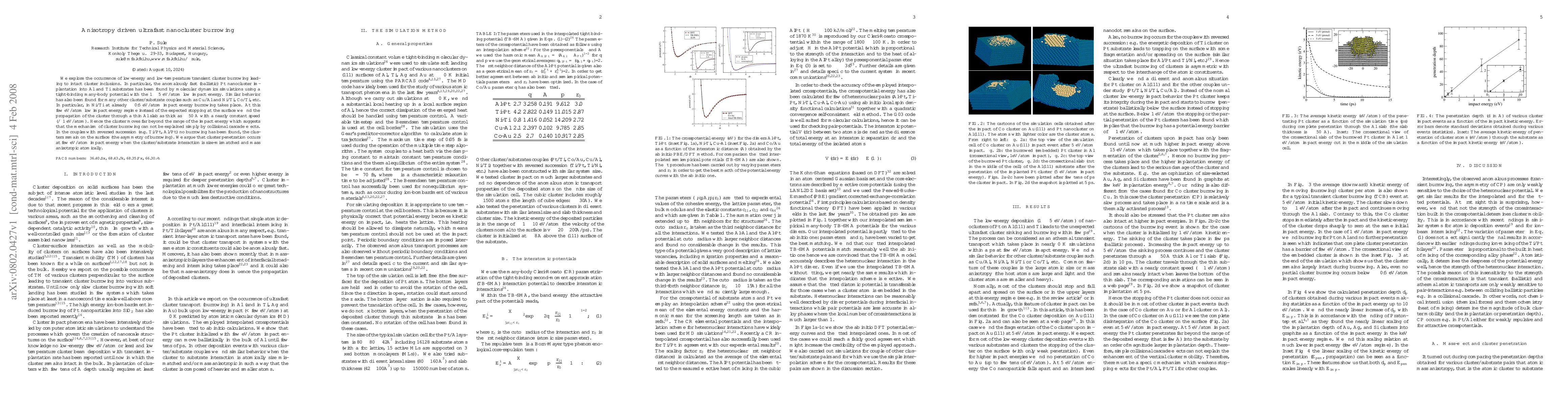 This research investigates ultrafast nanocluster burrowing into various substrates at low energy, revealing ballistic Pt nanocluster implantation into Al and Ti via molecular dynamics simulations. The study finds that at low impact energies, clusters burrow through substrates due to size-mismatched and anisotropic atomic interactions, rather than collisional cascades.