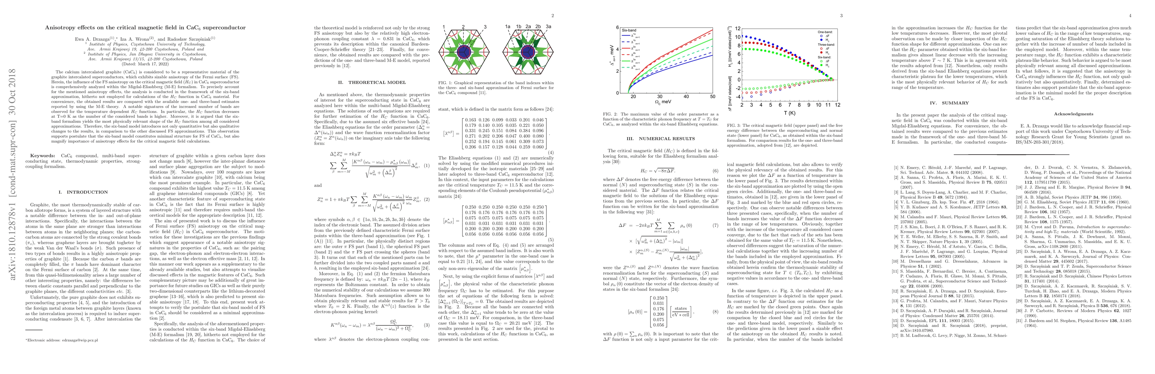 The calcium intercalated graphite (CaC$_{6}$) is considered to be a representative material of the graphite intercalated superconductors, which exhibits sizable anisotropy of the Fermi surface (FS). Herein, the influence of the FS anisotropy on the critical magnetic field ($H_{C}$) in CaC$_{6}$ superconductor is comprehensively analyzed within the Migdal-Eliashberg (M-E) formalism. To precisely account for the mentioned anisotropy effects, the analysis is conducted in the framework of the six-band approximation, hitherto not employed for calculations of the $H_{C}$ function in CaC$_{6}$ material. For convenience, the obtained results are compared with the available one- and three-band estimates reported by using the M-E theory. A notable signatures of the increased number of bands are observed for the temperature dependent $H_{C}$ functions. In particular, the $H_{C}$ function decreases at T=0 K as the number of the considered bands is higher. Moreover, it is argued that the six-band formalism yields the most physically relevant shape of the $H_{C}$ function among all considered approximations. Therefore, the six-band model introduces not only quantitative but also qualitative changes to the results, in comparison to the other discussed FS approximations. This observation supports postulate that the six-band model constitutes minimal structure for FS of CaC$_{6}$, but also magnify importance of anisotropy effects for the critical magnetic field calculations.