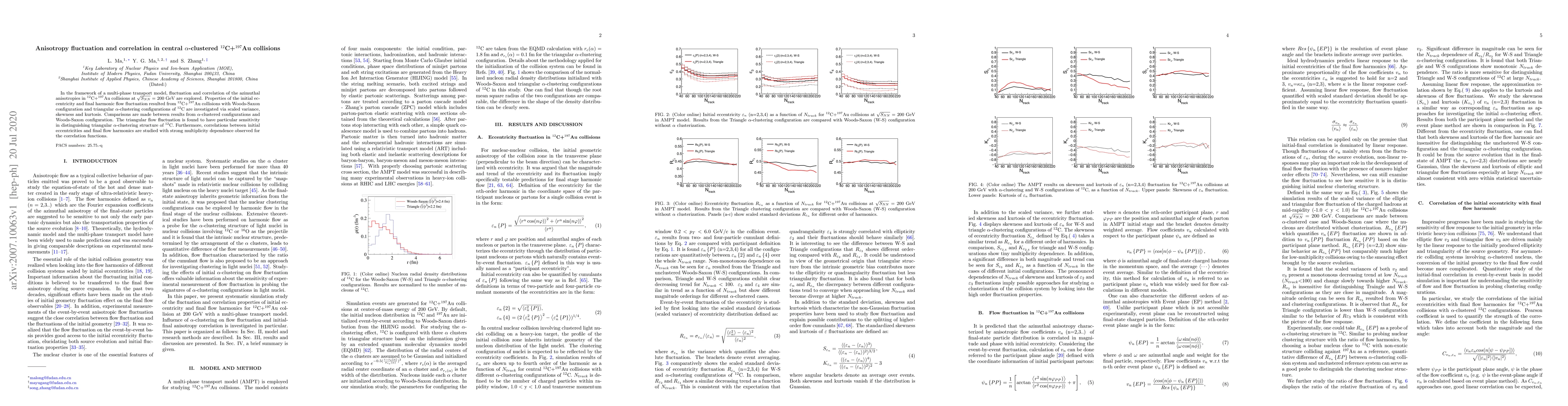 Researchers explored anisotropy fluctuations in heavy ion collisions using a multi-phase transport model, finding that triangular flow fluctuation can distinguish between different nuclear clustering structures.