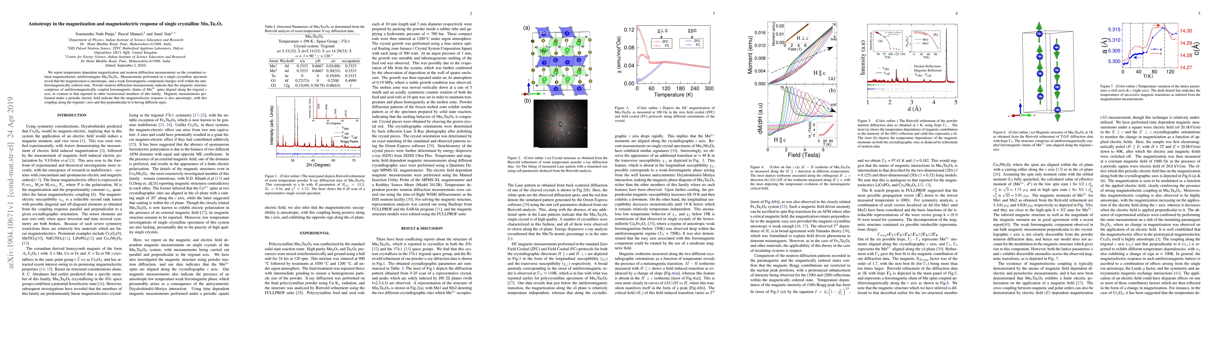 Researchers investigate anisotropic magnetization and magnetoelectric response in single crystalline Mn4Ta2O9, finding a weak ferromagnetic component within the antiferromagnetically ordered state and anisotropic coupling along the trigonal c axis.