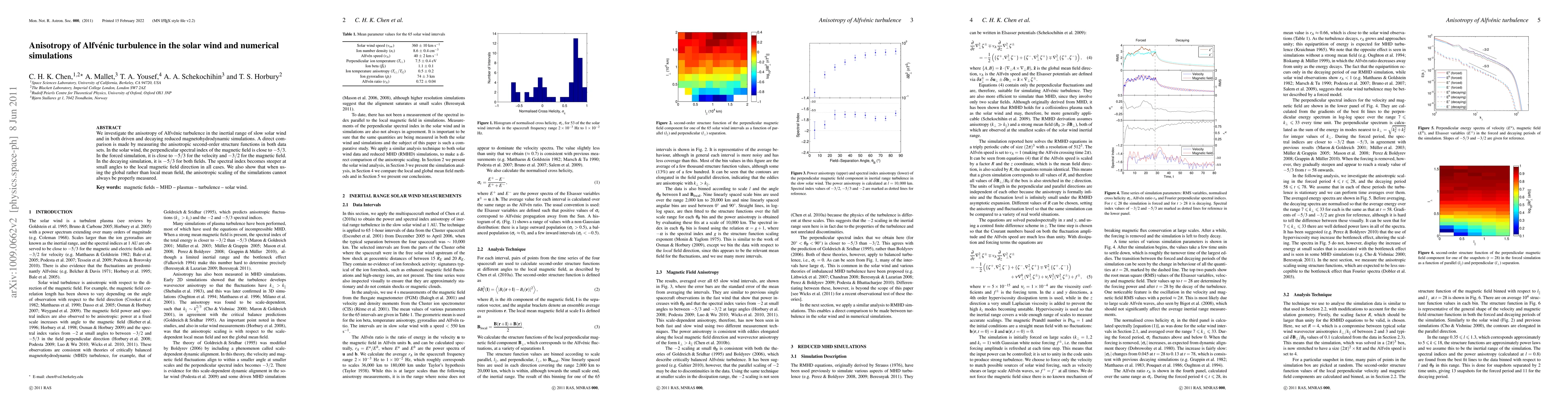 Researchers investigated Alfvenic turbulence in solar wind and simulations, finding that spectral indices vary between -5/3 for velocity and -3/2 for magnetic field in different scenarios.