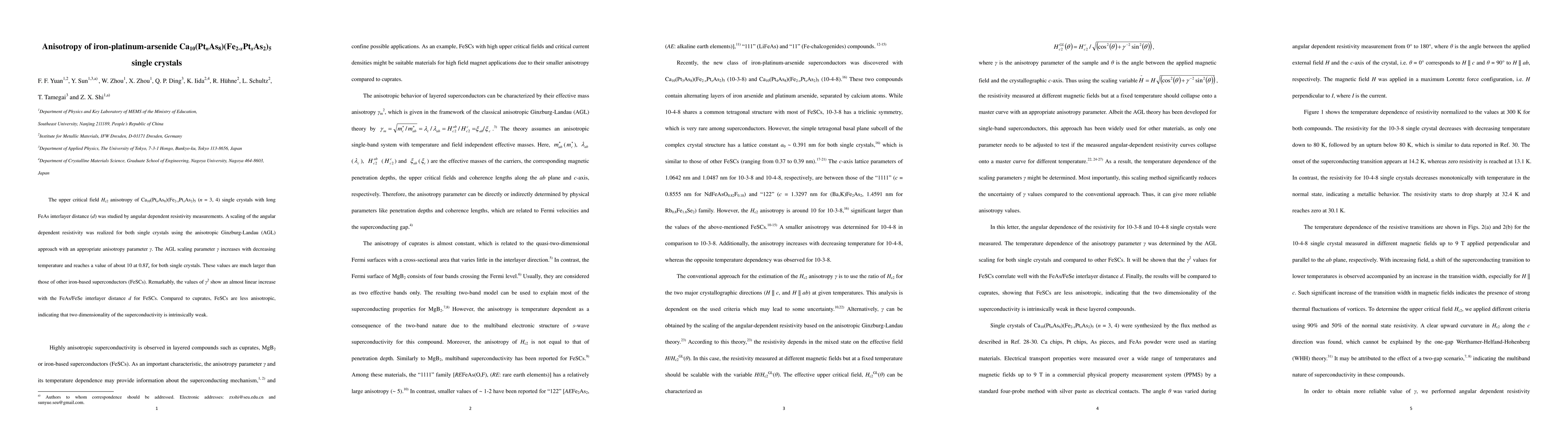 This study investigates the upper critical field anisotropy of Ca10(PtnAs8)(Fe2-xPtxAs2)5 single crystals, revealing a significant anisotropy parameter γ that scales with temperature and correlates with the FeAs interlayer distance. The findings suggest that iron-based superconductors exhibit less anisotropy compared to cuprates, indicating weaker two-dimensional superconductivity.