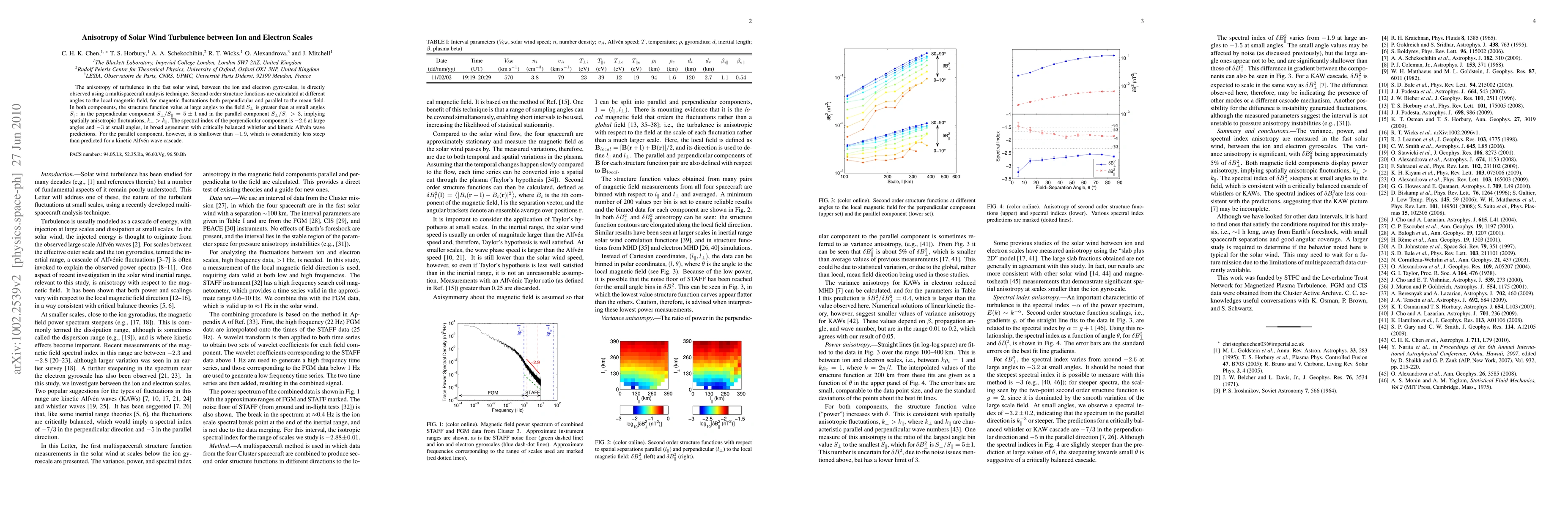 The study finds that solar wind turbulence exhibits anisotropy between ion and electron scales, with fluctuations being more pronounced perpendicular to the magnetic field. This suggests a difference in the underlying physical processes driving turbulence at large versus small angles.