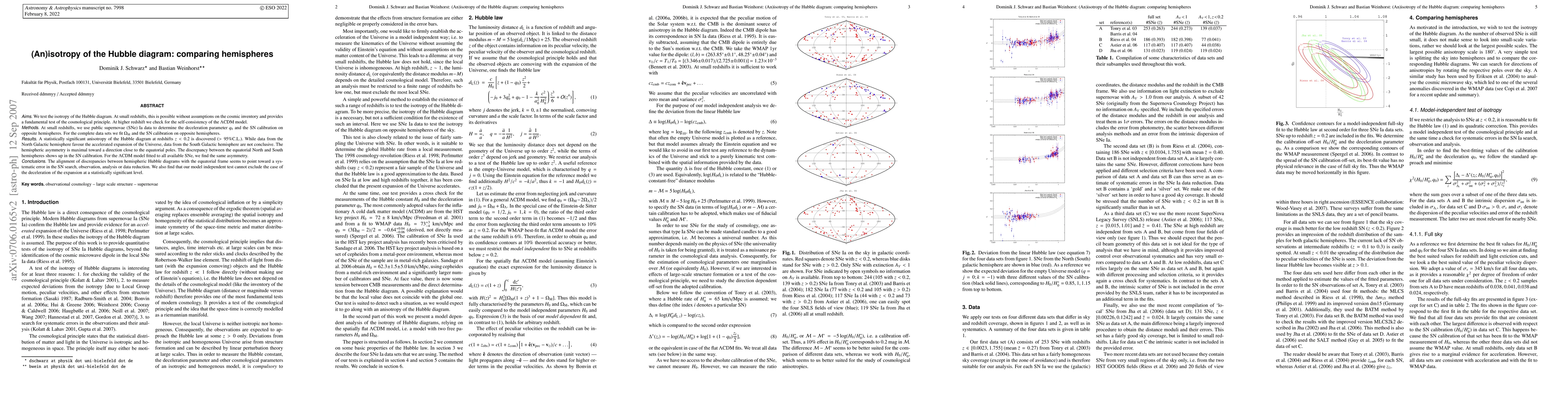 The study discovers a statistically significant anisotropy in the Hubble diagram at low redshifts (< 0.2), indicating hemispheric differences in supernovae Ia calibration and LambdaCDM model parameters, suggesting potential systematic errors in data collection or analysis. The observed hemispheric asymmetry aligns closely with the equatorial poles, raising questions about the cosmological principle.