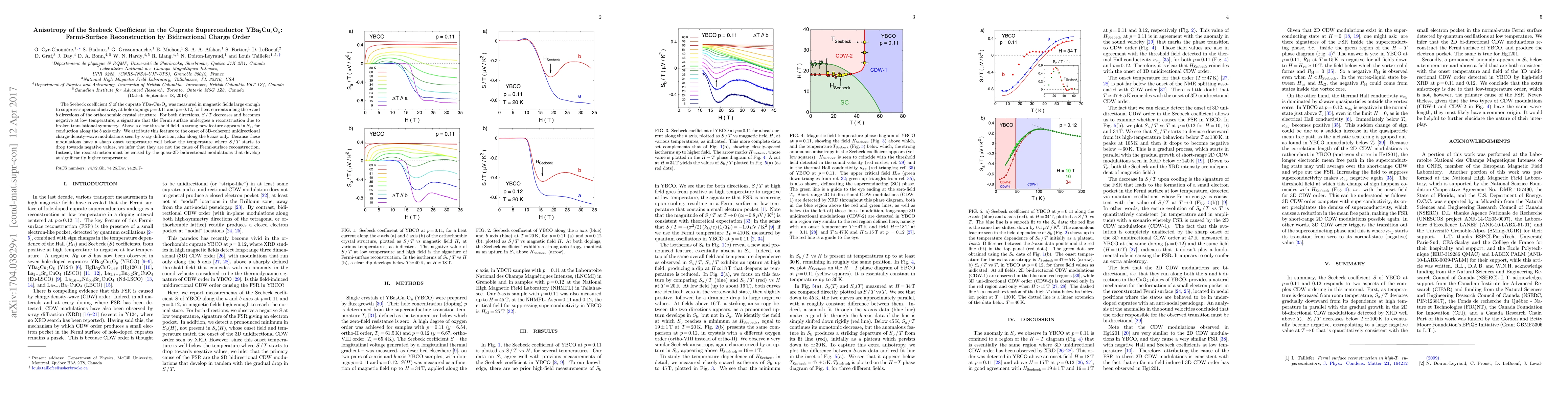 This study investigates the anisotropy of the Seebeck coefficient in YBa$_{2}$Cu$_{3}$O$_{y}$ under magnetic fields, revealing that the Fermi surface reconstructs due to quasi-2D bidirectional charge order, rather than the 3D-coherent unidirectional charge-density-wave modulations observed at lower temperatures. The Seebeck coefficient becomes negative at low temperatures, indicating this reconstruction.