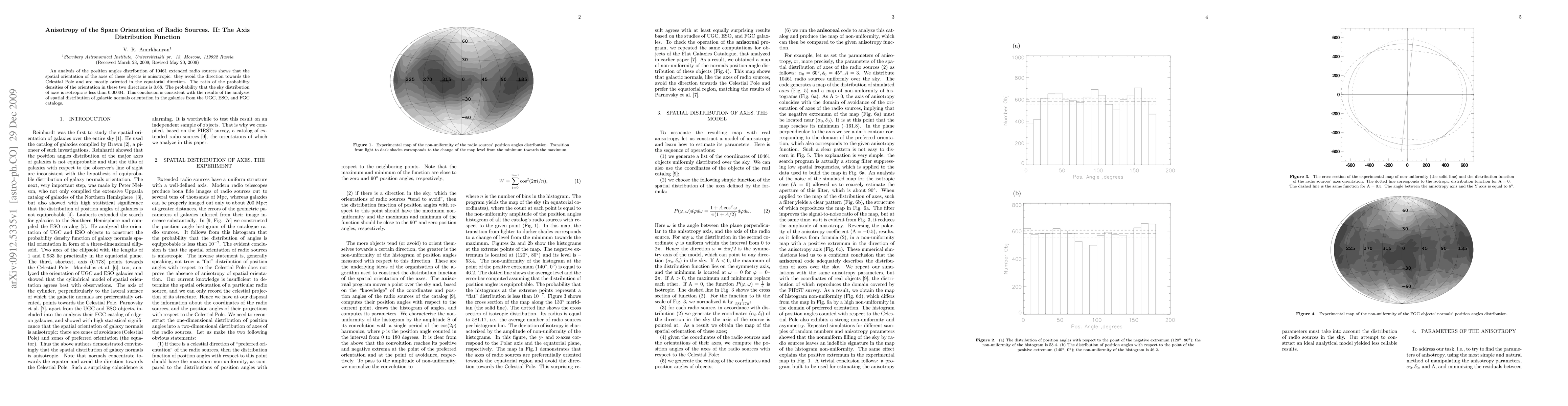 This study analyzes the position angles of 10,461 extended radio sources, revealing an anisotropic spatial orientation with a preference for equatorial directions over those towards the Celestial Pole. The probability of an isotropic distribution is extremely low, supporting the conclusion that the orientation of these radio sources is non-random.