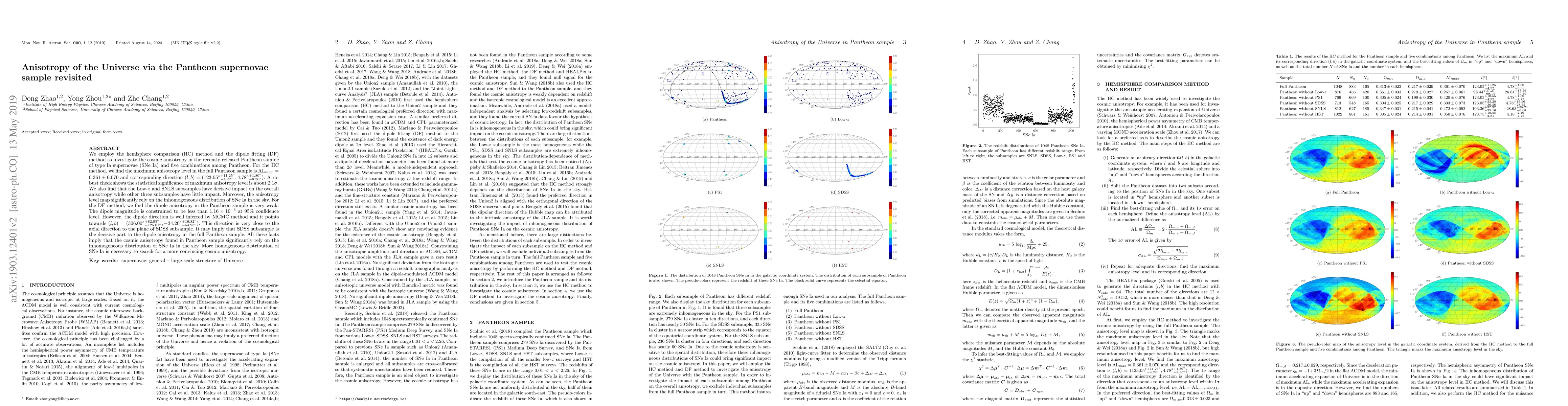 This study investigates cosmic anisotropy using the Pantheon supernovae sample through hemisphere comparison and dipole fitting methods, finding significant anisotropy linked to the inhomogeneous distribution of type Ia supernovae, while noting weak dipole anisotropy.