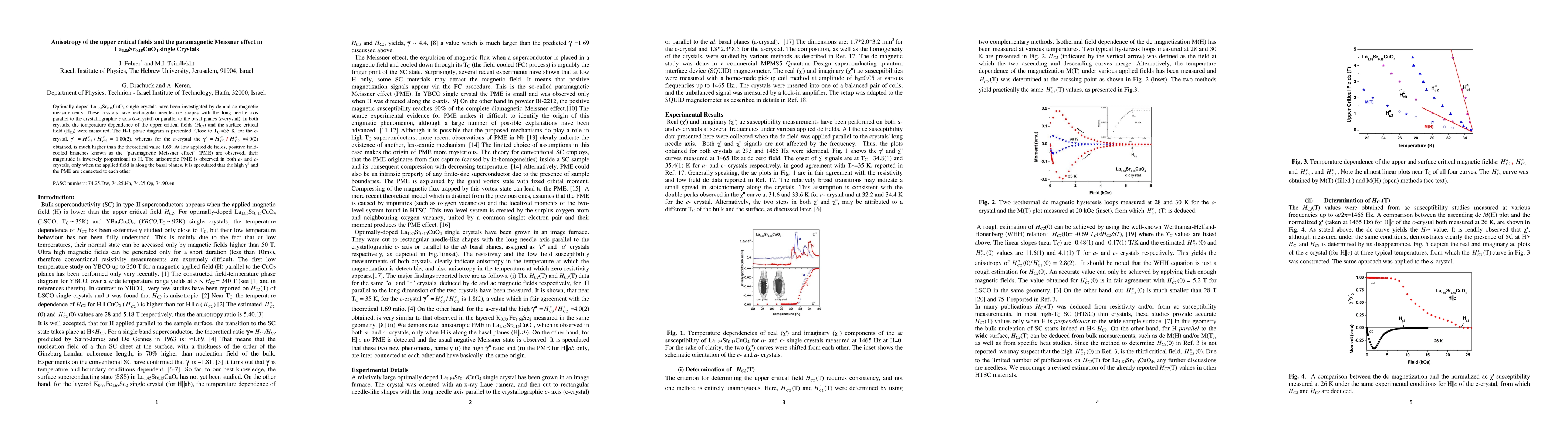 This research investigates optimally-doped La1.85Sr0.15CuO4 single crystals using magnetic measurements. It finds that the upper critical fields (HC2) and surface critical field (HC3) show distinct temperature dependencies in crystals aligned along the c-axis (c-crystal) and basal planes (a-crystal). Near the critical temperature (TC), gamma values (γc = 1.80(2) for c-crystal, γa = 4.0(2) for a-crystal) deviate from theoretical predictions, with a-crystal showing a higher, anisotropic 'paramagnetic Meissner effect' (PME) under low dc fields. The PME magnitude inversely correlates with the applied field, suggesting a connection between high γa and PME.