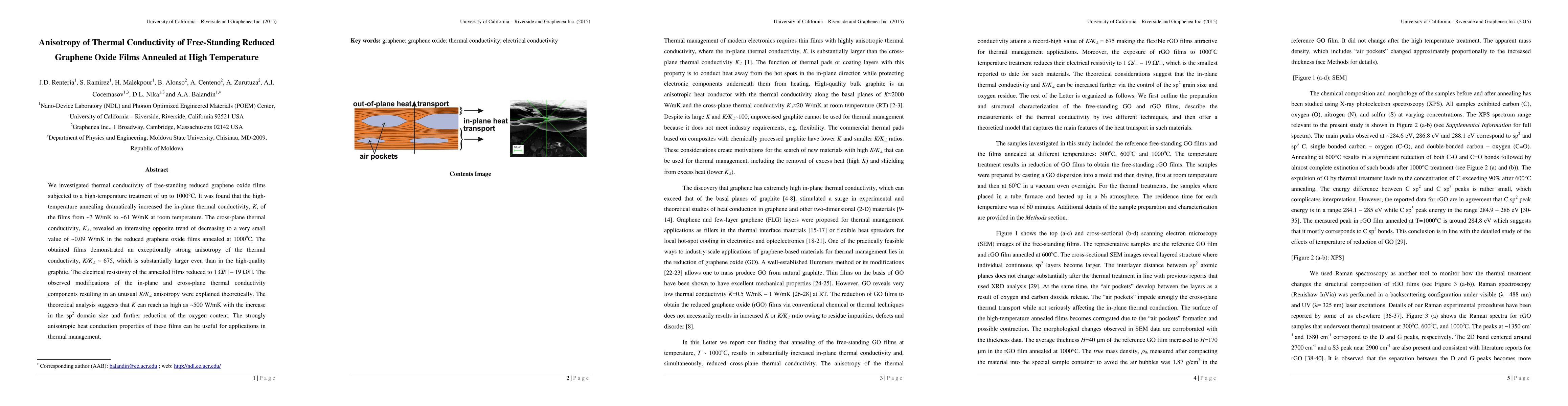 High-temperature annealing significantly boosts the in-plane thermal conductivity of free-standing reduced graphene oxide films, while dramatically reducing cross-plane conductivity, resulting in a highly anisotropic thermal conductivity ratio of ~675, far exceeding that of high-quality graphite.