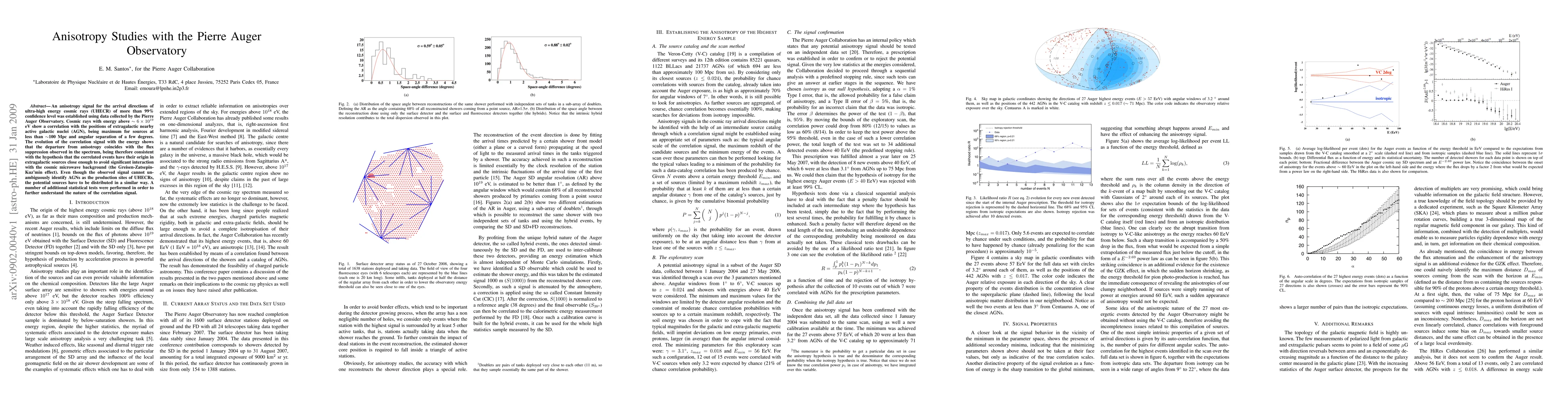 An anisotropy signal for the arrival directions of ultra-high energy cosmic rays (UHECR) of more than 99% confidence level was established using data collected by the Pierre Auger Observatory. Cosmic rays with energy above $\sim 6 \times 10^{19}$ eV show a correlation with the positions of extragalactic nearby active galactic nuclei (AGN), being maximum for sources at less than $\sim$100 Mpc and angular separation of a few degrees. The evolution of the correlation signal with the energy shows that the departure from anisotropy coincides with the flux suppression observed in the spectrum, being therefore consistent with the hypothesis that the correlated events have their origin in extragalactic sources close enough to avoid significant interaction with the cosmic microwave background (the Greisen-Zatsepin-Kuz'min effect). Even though the observed signal cannot unambiguously identify AGNs as the production sites of UHECRs, the potential sources have to be distributed in a similar way. A number of additional statistical tests were performed in order to further understand the nature of the correlation signal.