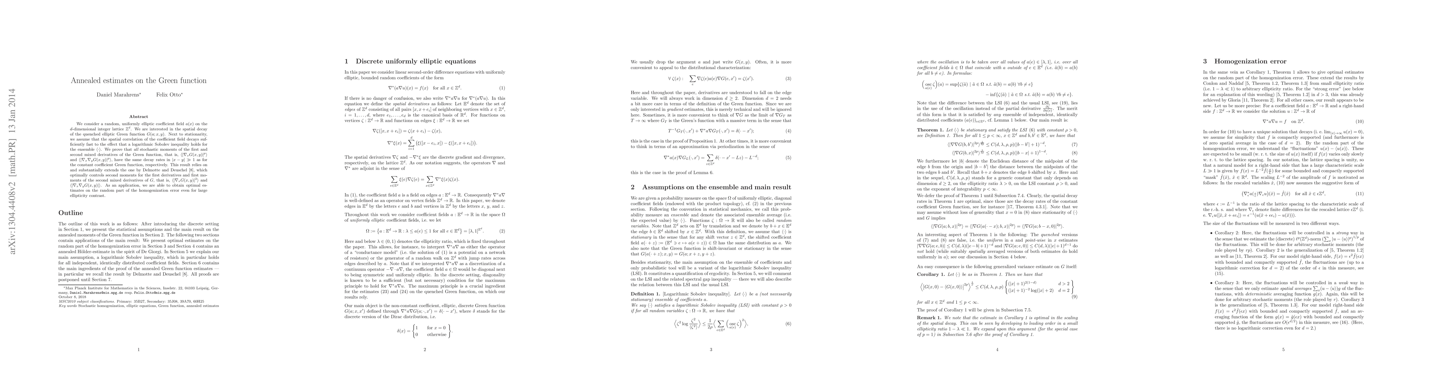 We consider a random, uniformly elliptic coefficient field $a(x)$ on the $d$-dimensional integer lattice $\mathbb{Z}^d$. We are interested in the spatial decay of the quenched elliptic Green function $G(a;x,y)$. Next to stationarity, we assume that the spatial correlation of the coefficient field decays sufficiently fast to the effect that a logarithmic Sobolev inequality holds for the ensemble $\langle\cdot\rangle$. We prove that all stochastic moments of the first and second mixed derivatives of the Green function, that is, $\langle|\nabla_x G(x,y)|^p\rangle$ and $\langle|\nabla_x\nabla_y G(x,y)|^p\rangle$, have the same decay rates in $|x-y|\gg 1$ as for the constant coefficient Green function, respectively. This result relies on and substantially extends the one by Delmotte and Deuschel \cite{DeuschelDelmotte}, which optimally controls second moments for the first derivatives and first moments of the second mixed derivatives of $G$, that is, $\langle|\nabla_x G(x,y)|^2\rangle$ and $\langle|\nabla_x\nabla_y G(x,y)|\rangle$. As an application, we are able to obtain optimal estimates on the random part of the homogenization error even for large ellipticity contrast.