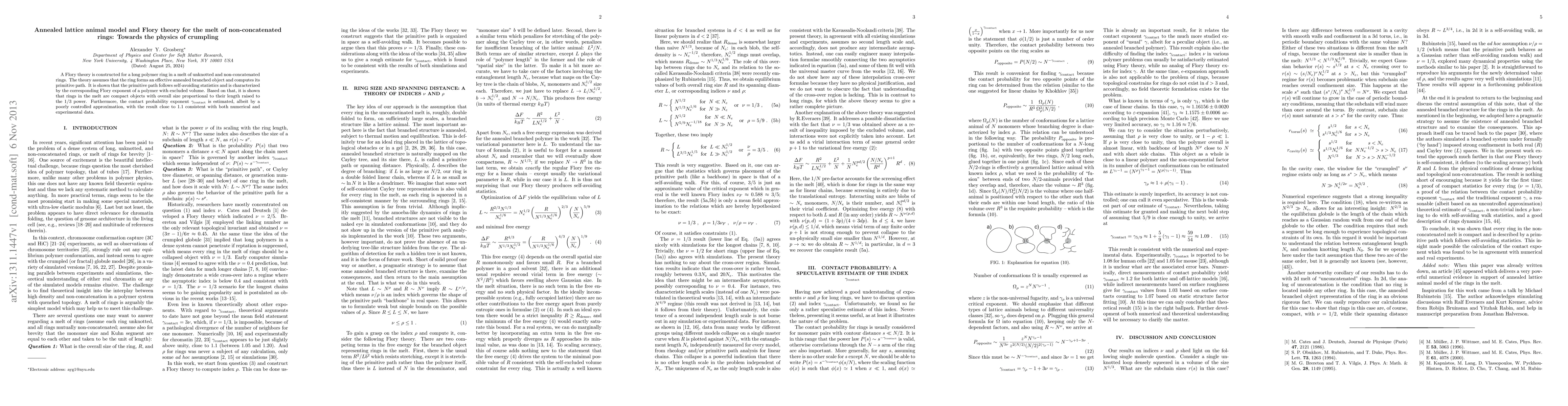 This paper constructs a Flory theory for non-concatenated polymer rings in a melt, showing that the rings behave as compact objects with size proportional to their length raised to the 1/3 power. The study also estimates the contact probability exponent, aligning with numerical and experimental data.