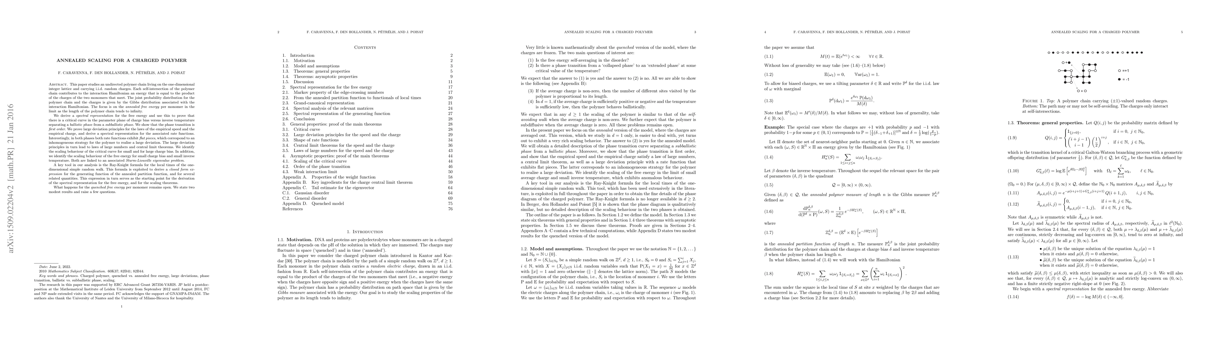 This paper investigates the annealed free energy of a charged polymer on a 1-dimensional lattice, deriving a spectral representation and identifying a critical curve that separates a ballistic phase from a subballistic phase. The study reveals first-order phase transitions and large deviation principles for empirical speed and charge, with both phases exhibiting flat pieces in rate functions.
