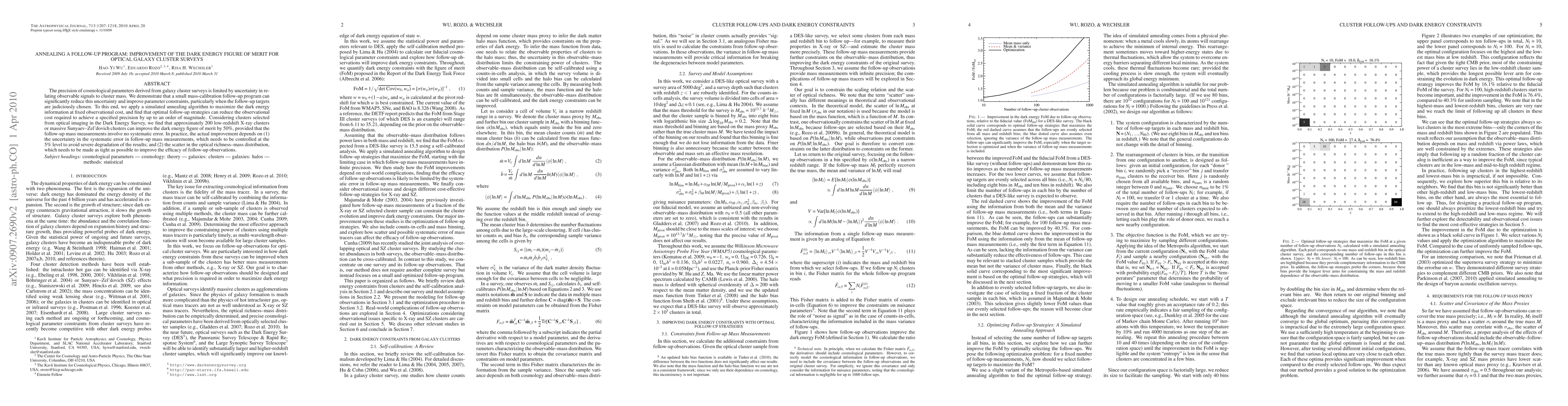 A study finds that a small follow-up program can significantly reduce uncertainty in galaxy cluster surveys, improving dark energy parameter constraints. This improvement comes at reduced observational cost, up to an order of magnitude.