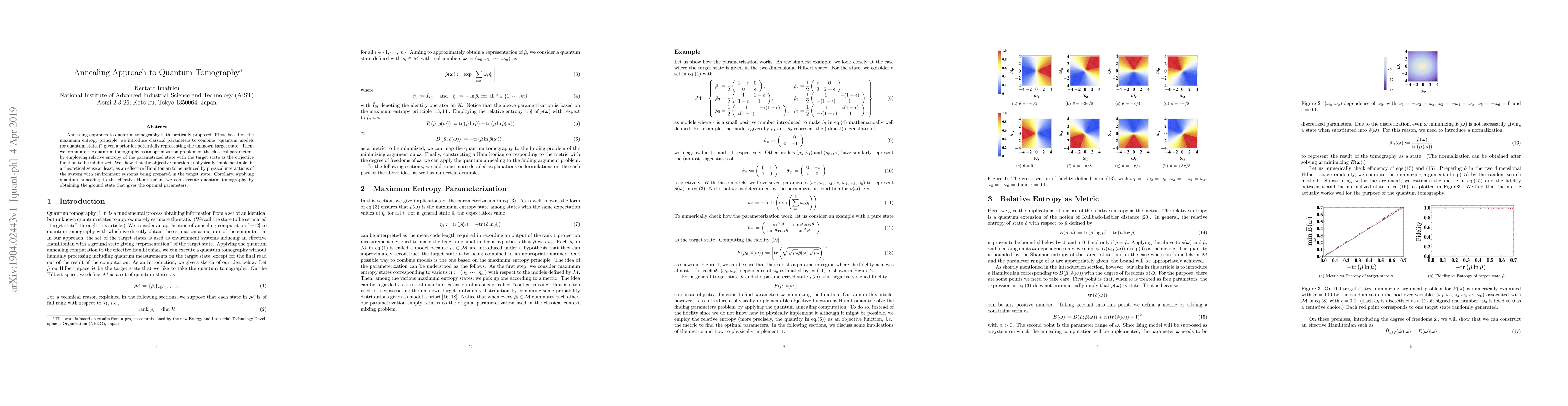 This paper proposes an annealing approach for quantum tomography, framing it as an optimization problem using the maximum entropy principle. By employing relative entropy as the objective function, the authors demonstrate that quantum annealing can be used to determine the optimal parameters for the unknown quantum state.