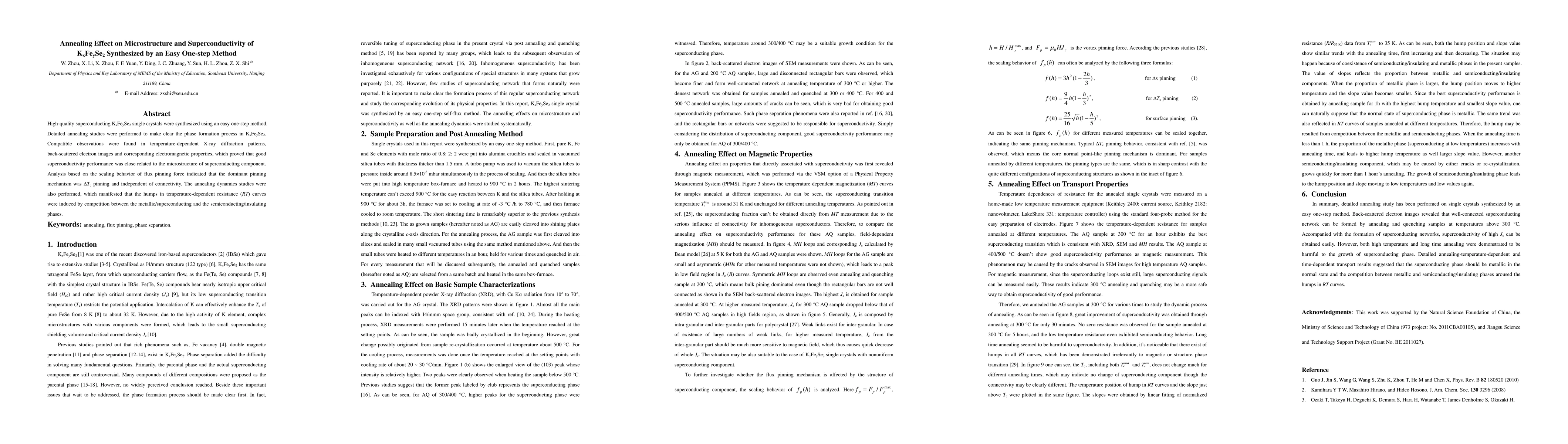 High-quality superconducting KxFeySe2 single crystals were synthesized using an easy one-step method. Detailed annealing studies were performed to make clear the phase formation process in KxFeySe2. Compatible observations were found in temperature-dependent X-ray diffraction patterns, back-scattered electron images and corresponding electromagnetic properties, which proved that good superconductivity performance was close related to the microstructure of superconducting component. Analysis based on the scaling behavior of flux pinning force indicated that the dominant pinning mechanism was delta(Tc) pinning and independent of connectivity. The annealing dynamics studies were also performed, which manifested that the humps in temperature-dependent resistance (RT) curves were induced by competition between the metallic/superconducting and the semiconducting/insulating phases.