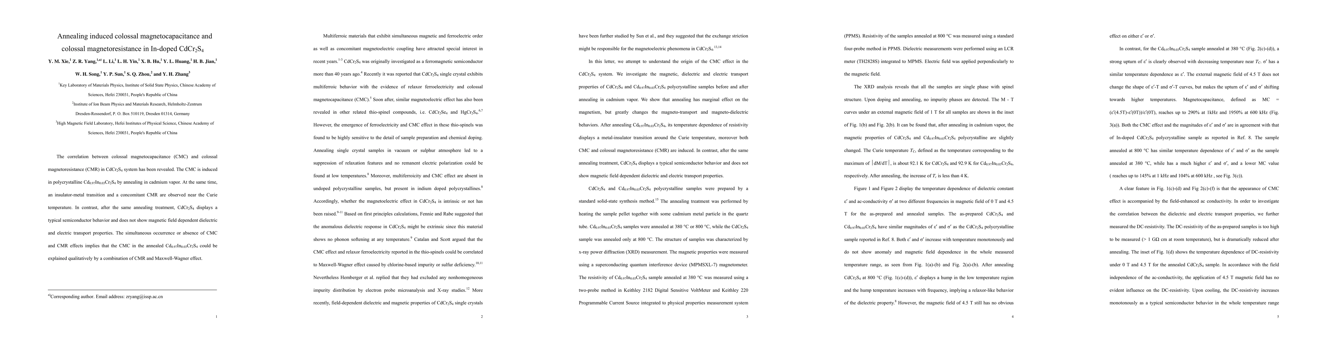 This study reveals that annealing in cadmium vapor induces colossal magnetocapacitance in In-doped CdCr2S4, accompanied by an insulator-metal transition and colossal magnetoresistance near the Curie temperature, while pure CdCr2S4 remains a semiconductor without these effects.