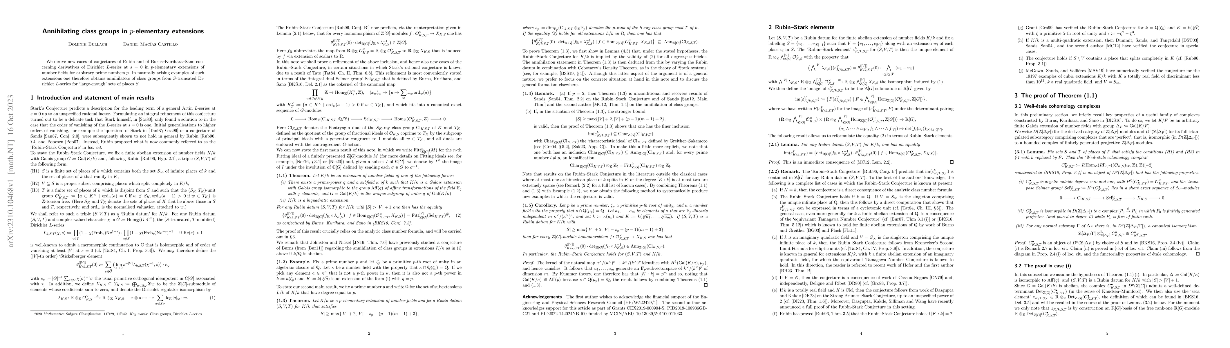 We derive new cases of conjectures of Rubin and of Burns--Kurihara--Sano concerning derivatives of Dirichlet $L$-series at $s = 0$ in $p$-elementary extensions of number fields for arbitrary prime numbers $p$. In naturally arising examples of such extensions one therefore obtains annihilators of class groups from $S$-truncated Dirichlet $L$-series for `large-enough' sets of places $S$.