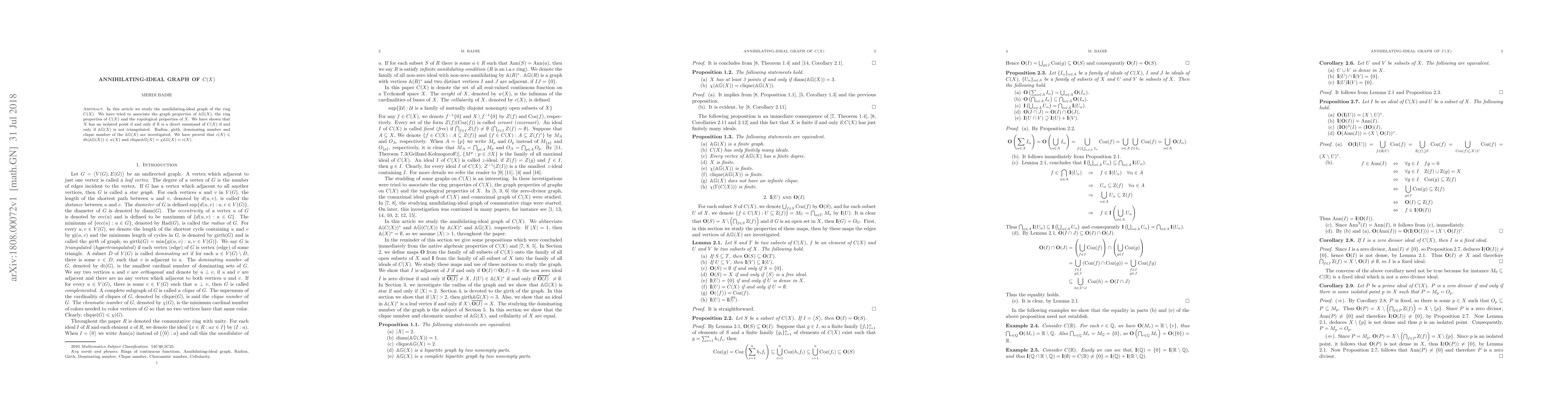 The research explores the annihilating-ideal graph of the ring C(X) by associating graph properties, ring properties, and topological properties of X. It investigates radius, girth, dominating number, and clique number of the graph.