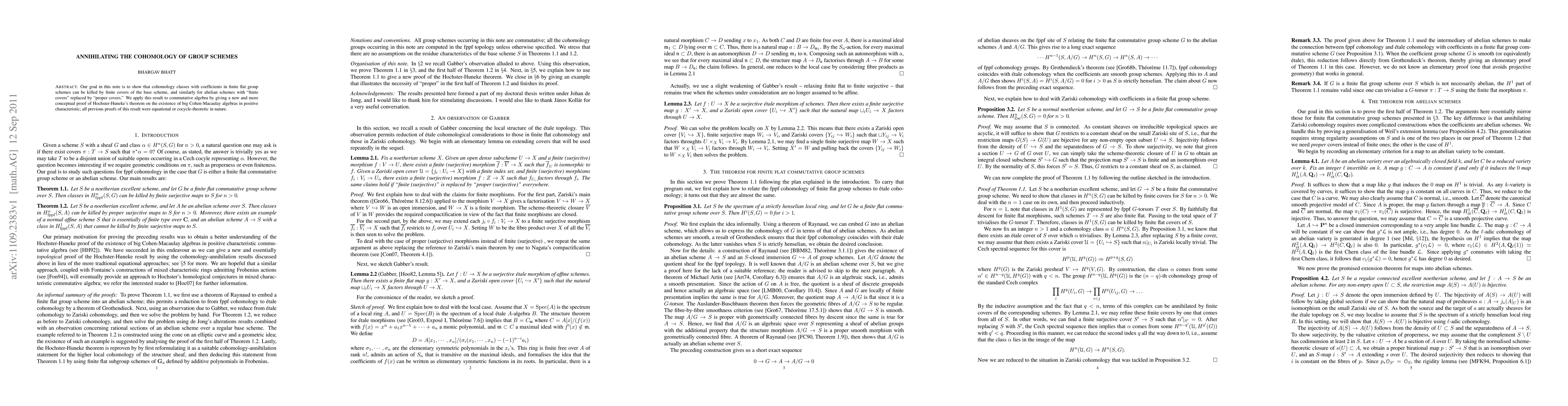 This paper demonstrates that cohomology classes in finite flat group schemes can be annulled by finite base scheme covers, and extends this to abelian schemes with proper covers. It provides a novel conceptual proof of Hochster-Huneke's theorem on big Cohen-Macaulay algebras in positive characteristic, contrasting previous equational or cocycle-theoretic proofs.