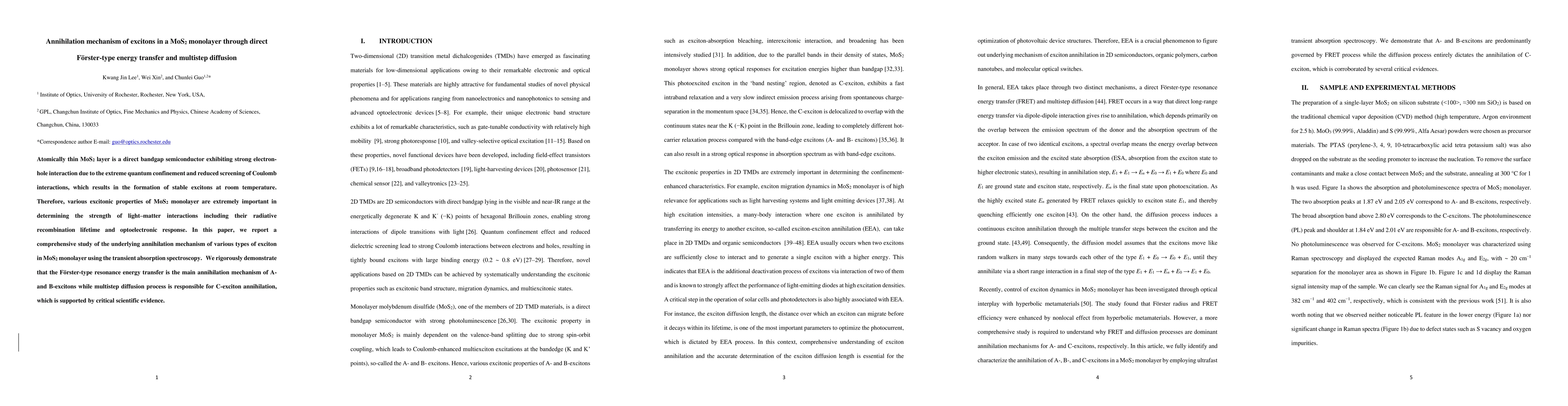 Atomically thin MoS2 layer is a direct bandgap semiconductor exhibiting strong electron-hole interaction due to the extreme quantum confinement and reduced screening of Coulomb interactions, which results in the formation of stable excitons at room temperature. Therefore, various excitonic properties of MoS2 monolayer are extremely important in determining the strength of light matter interactions including their radiative recombination lifetime and optoelectronic response. In this paper, we report a comprehensive study of the underlying annihilation mechanism of various types of exciton in MoS2 monolayer using the transient absorption spectroscopy. We rigorously demonstrate that the F\"orster-type resonance energy transfer is the main annihilation mechanism of A- and B-excitons while multistep diffusion process is responsible for C-exciton annihilation, which is supported by critical scientific evidence.