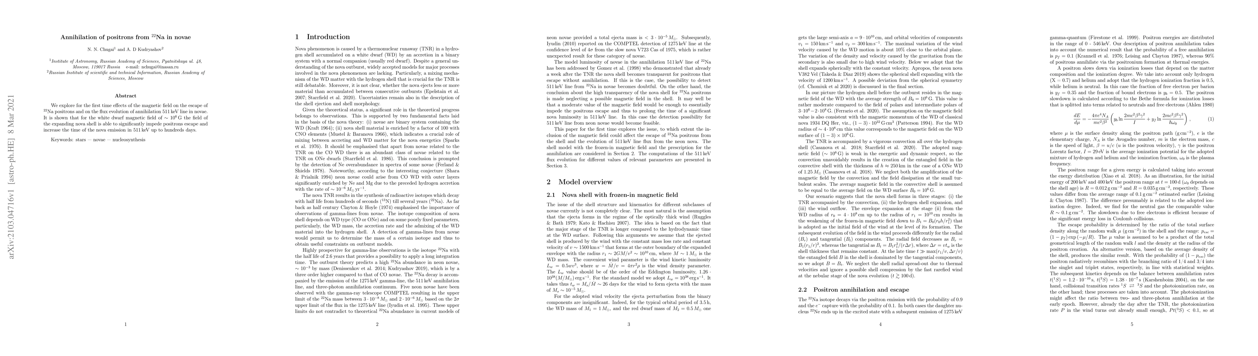 This paper investigates the influence of magnetic fields on the escape of positrons from $^{22}$Na in novae, revealing that fields of around $10^6$ G can significantly impede positron escape and extend the time of 511 keV annihilation emission by up to hundreds of days.
