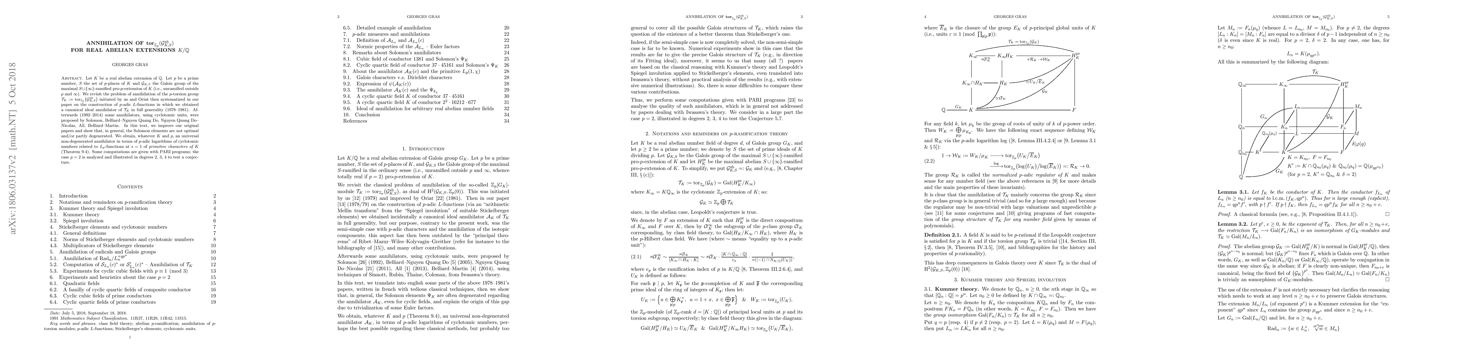 Preprint of a paper to appear in "Communications in Advanced Mathematical Sciences". Let K be a real abelian extension of Q. Let p be a prime number, S the set of p-places of K and G\_K,S the Galois group of the maximal S-ramified pro-p-extension of K (i.e., unramified outside p and infinity). We revisit the problem of annihilation of the p-torsion group T\_K:=tor\_Z\_p(G\_K,S^ab) initiated by us and Oriat then systematized in our paper on the construction of p-adic L-functions in which we obtained a canonical ideal annihilator of T\_K in full generality (1978--1981). Afterwards (1992--2014) some annihilators, using cyclotomic units, were proposed by Solomon, Belliard--Nguyen Quang Do, Nguyen Quang Do--Nicolas, All, Belliard--Martin.In this text, we improve our original papers and show that, in general, the Solomon elements are not optimal and/or partly degenerated. We obtain, whatever K and p, an universal non-degenerated annihilator in terms of p-adic logarithms of cyclotomic numbers related to L\_p-functions at s=1 of its primitive characters of K (Theorem 9.4). Some computations are given with PARI programs; the case p=2 is analyzed and illustrated in degrees 2, 3, 4 to test a conjecture.