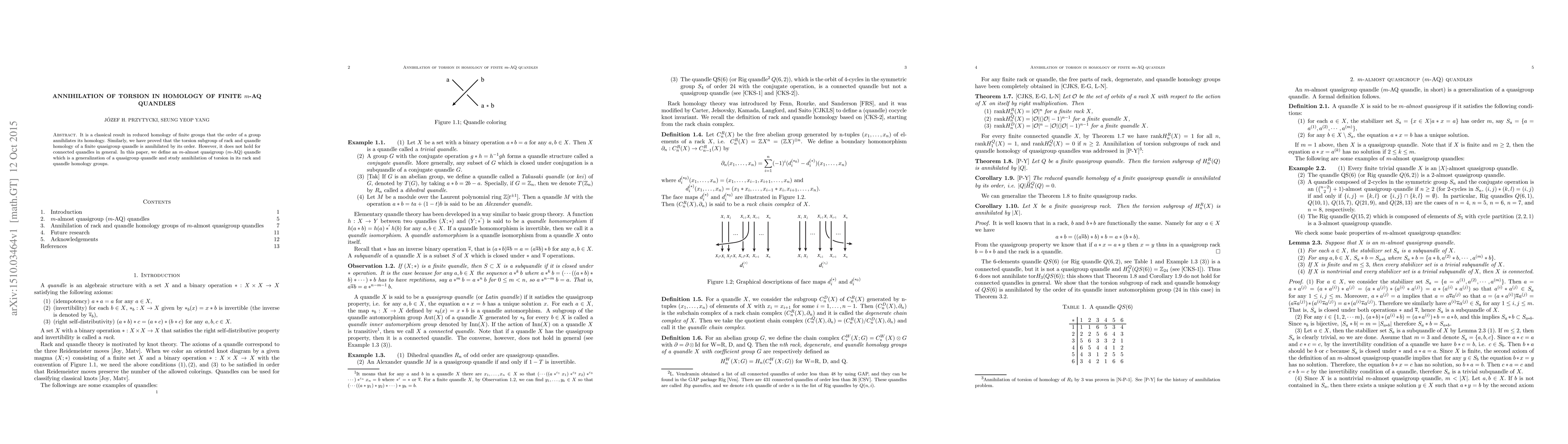 It is a classical result in reduced homology of finite groups that the order of a group annihilates its homology. Similarly, we have proved that the torsion subgroup of rack and quandle homology of a finite quasigroup quandle is annihilated by its order. However, it does not hold for connected quandles in general. In this paper, we define an $m$-almost quasigroup ($m$-AQ) quandle which is a generalization of a quasigroup quandle and study annihilation of torsion in its rack and quandle homology groups.