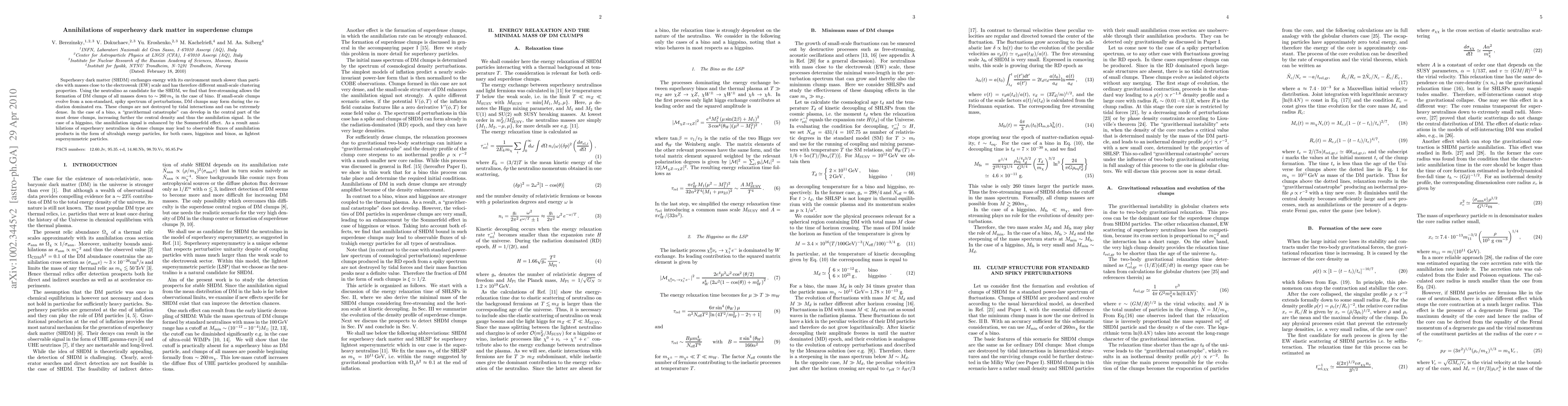 Superheavy dark matter clumps can form in superdense regions of the universe, potentially leading to observable annihilation signals in ultrahigh energy particles.