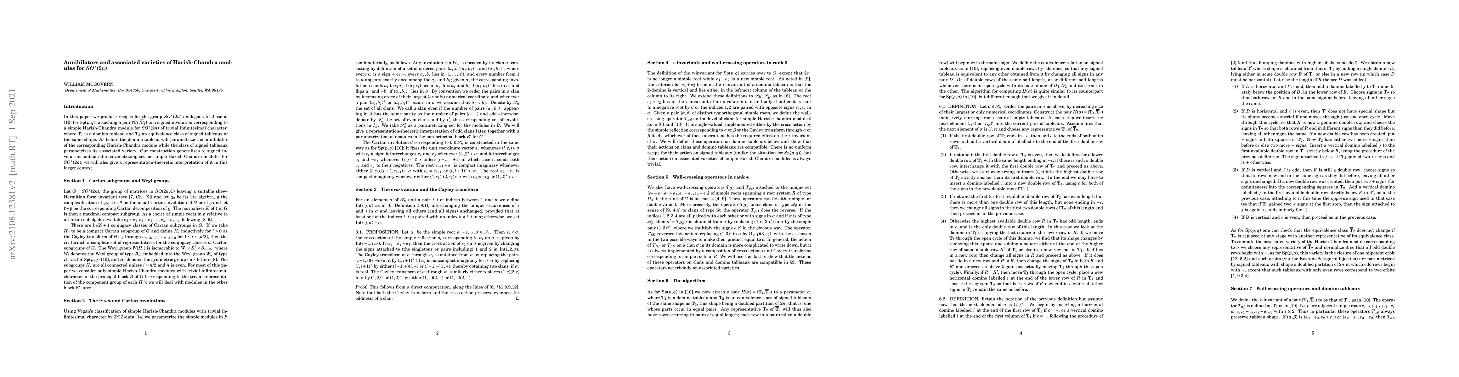 Given a simple Harish-Chandra module for this group of trivial infinitesimal character, parametrized by a signed involution, we produce combinatorial recipes for attaching to it a pair of tableaux from which its annihilator and associated variety can be read off.