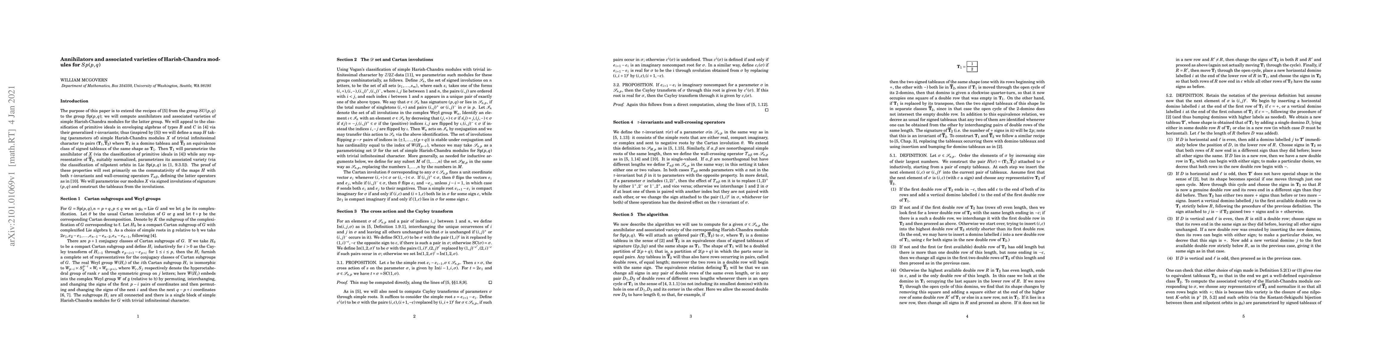 This paper details a method to determine the annihilators and associated varieties of simple Harish-Chandra modules for Sp(p,q) using domino tableaux tied to a module parameter, advancing the understanding of these algebraic structures.